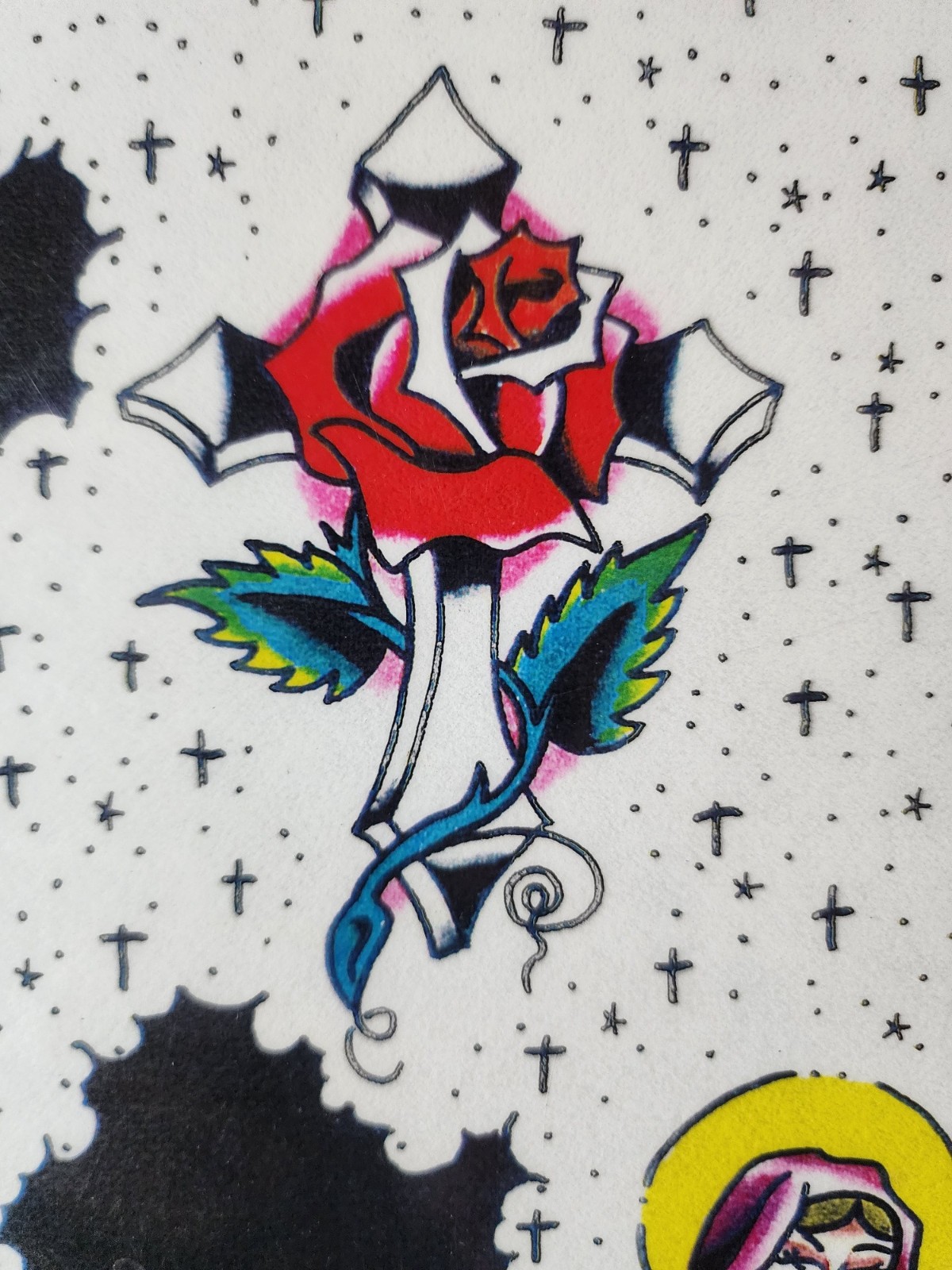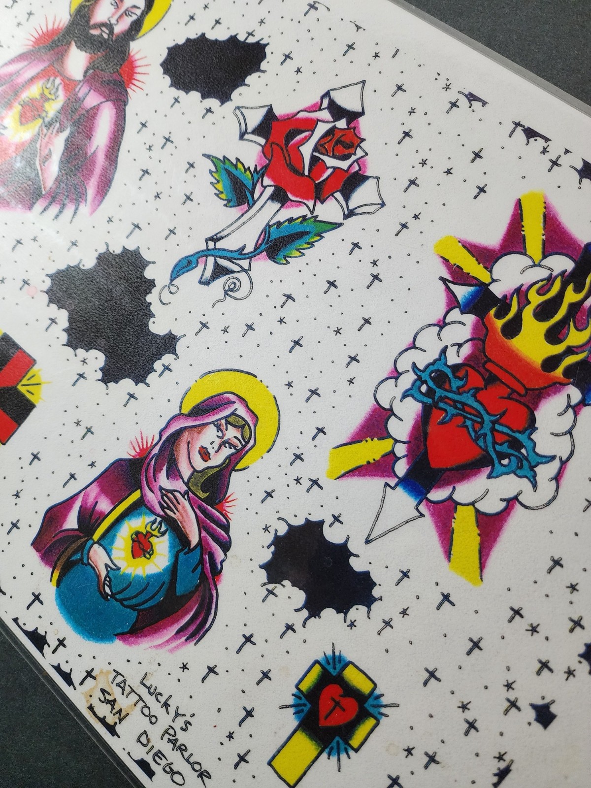 Vintage Morgwn Pennypacker Traditional Tattoo Flash Sheet Shop Used Jesus, Mary