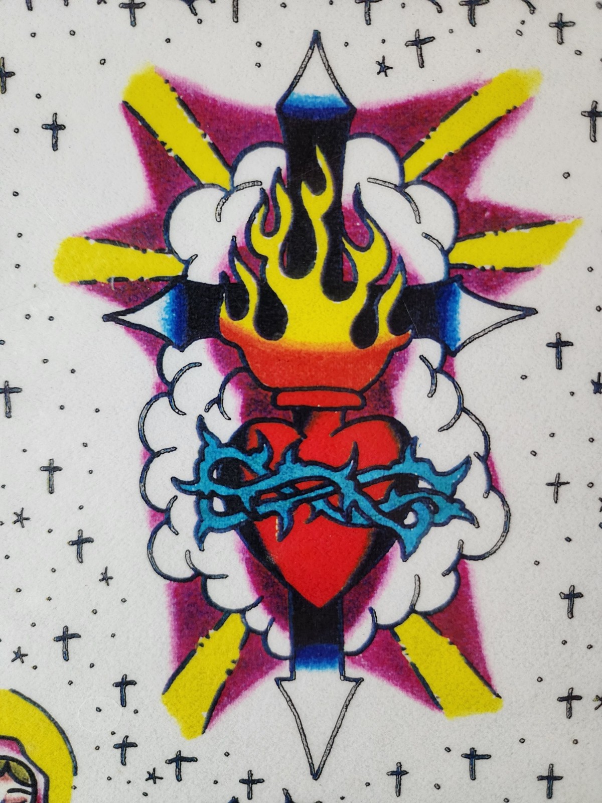 как выглядит Vintage Morgwn Pennypacker Traditional Tattoo Flash Sheet Shop Used Jesus, Mary фото