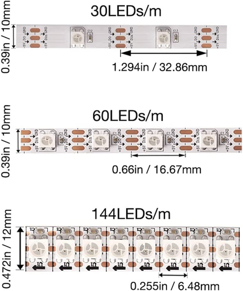 Included Components: 3 PIN Connector x1, 16.4FT WS2812B LED strip x1, 3 Keys Mini Cont