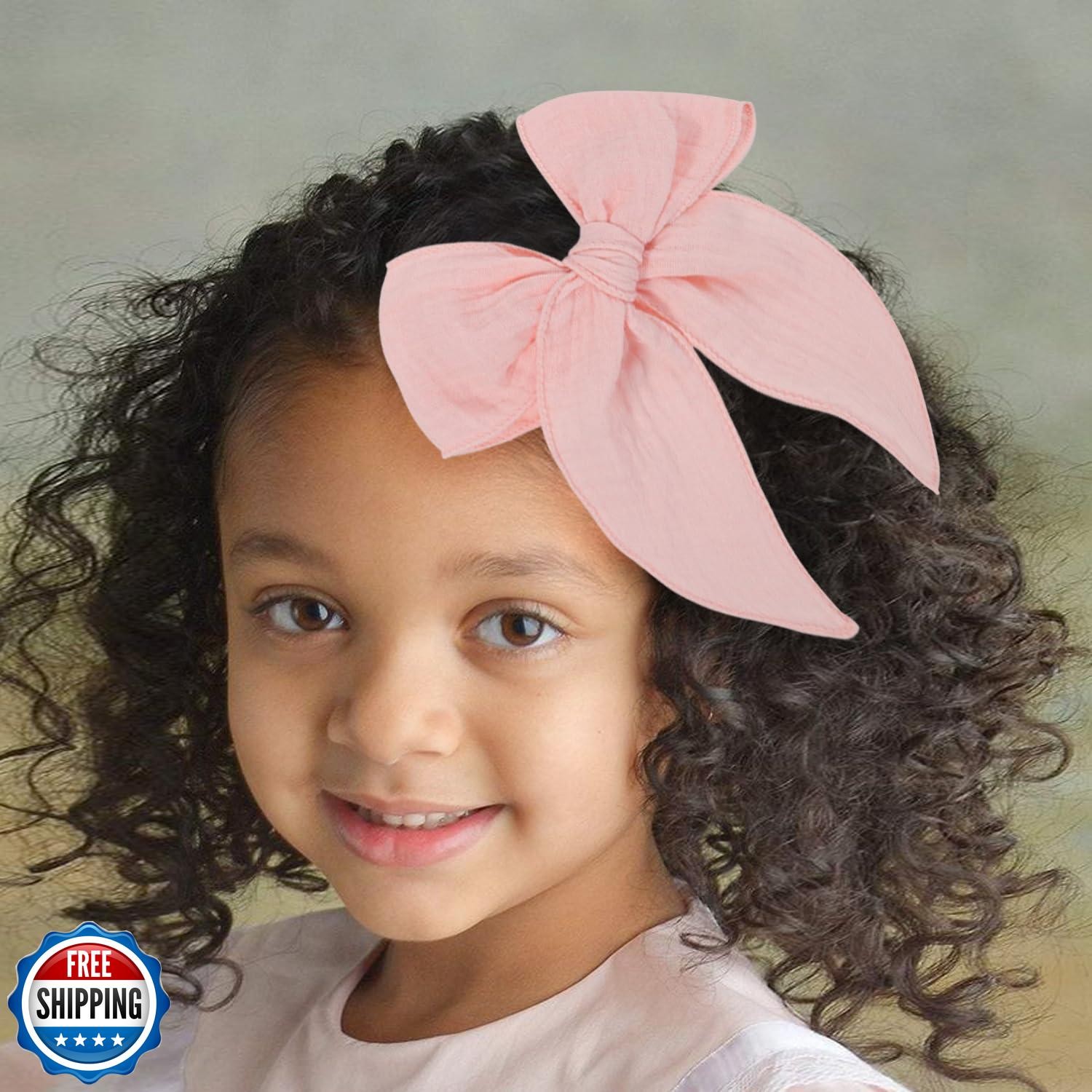 как выглядит 5.5 Inch Pink Fable Hair Bow: Handmade Linen Cotton Hair Clip for Girls - 1 P фото