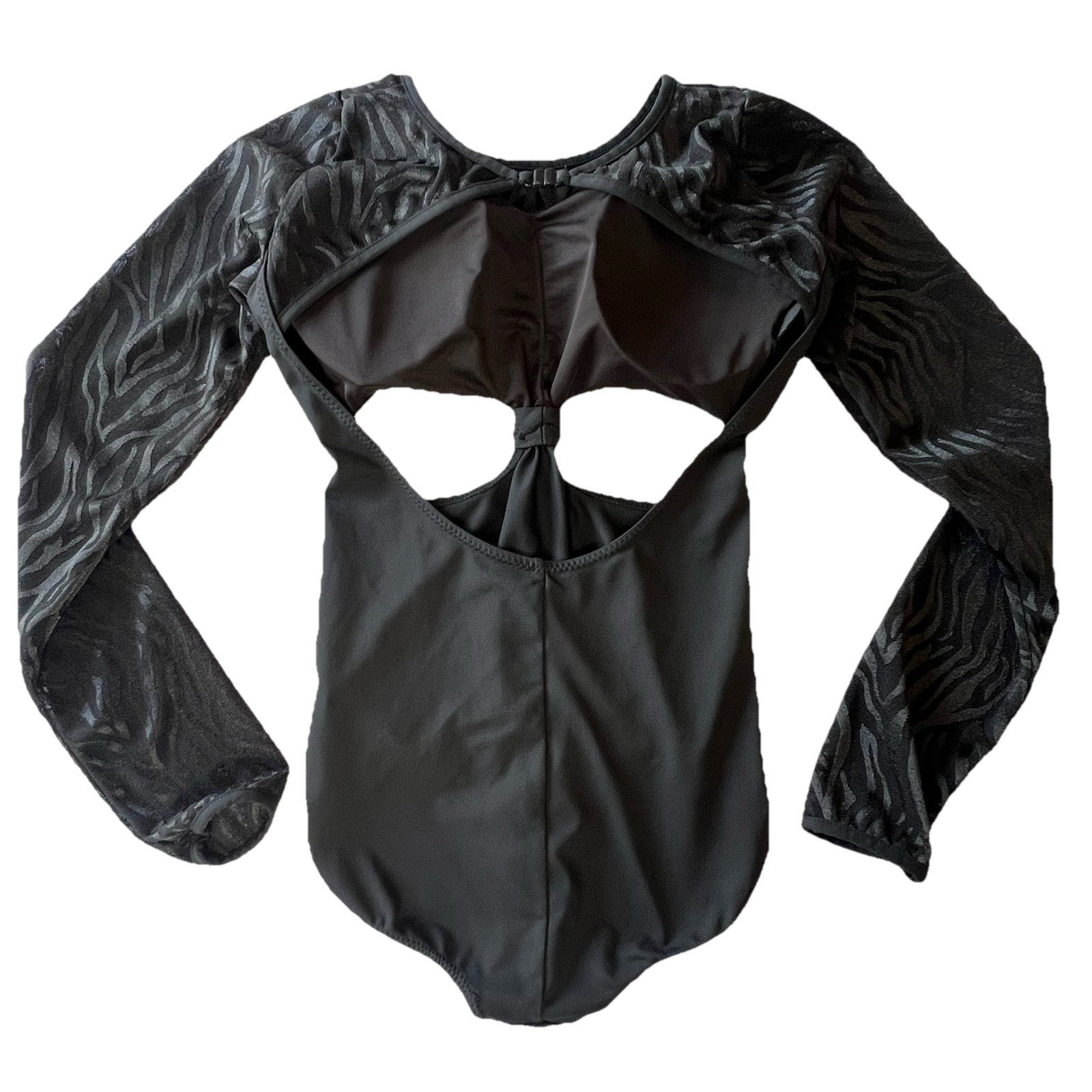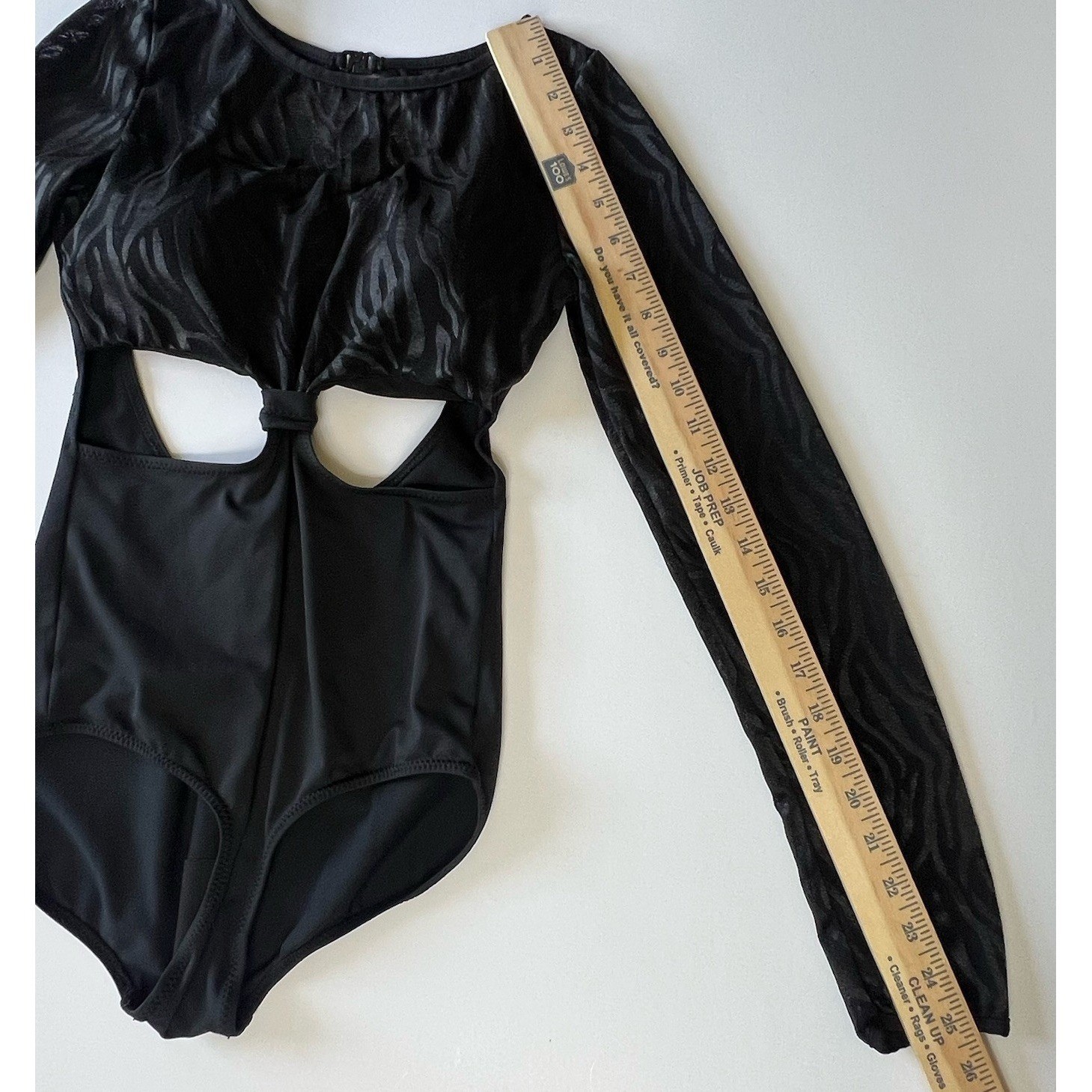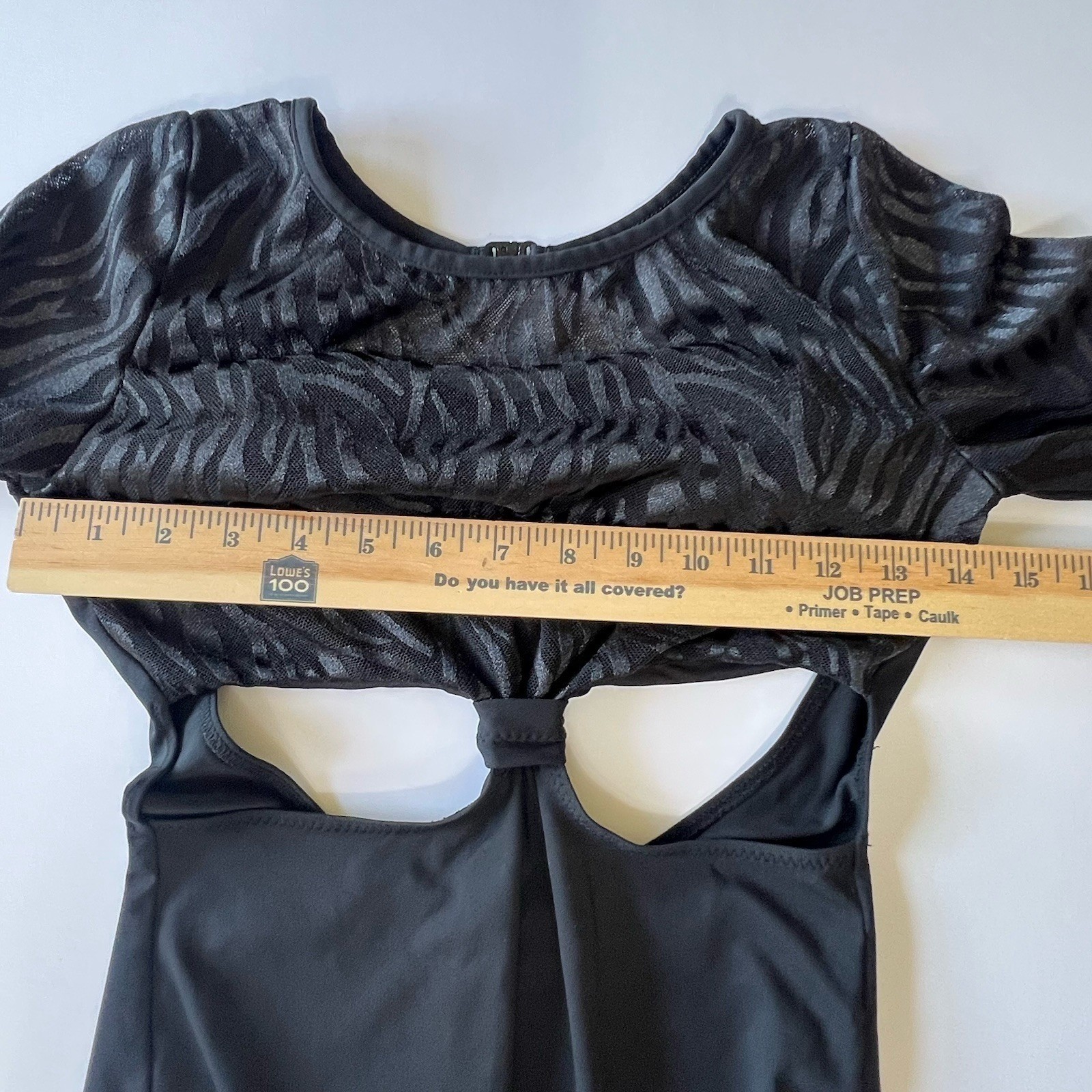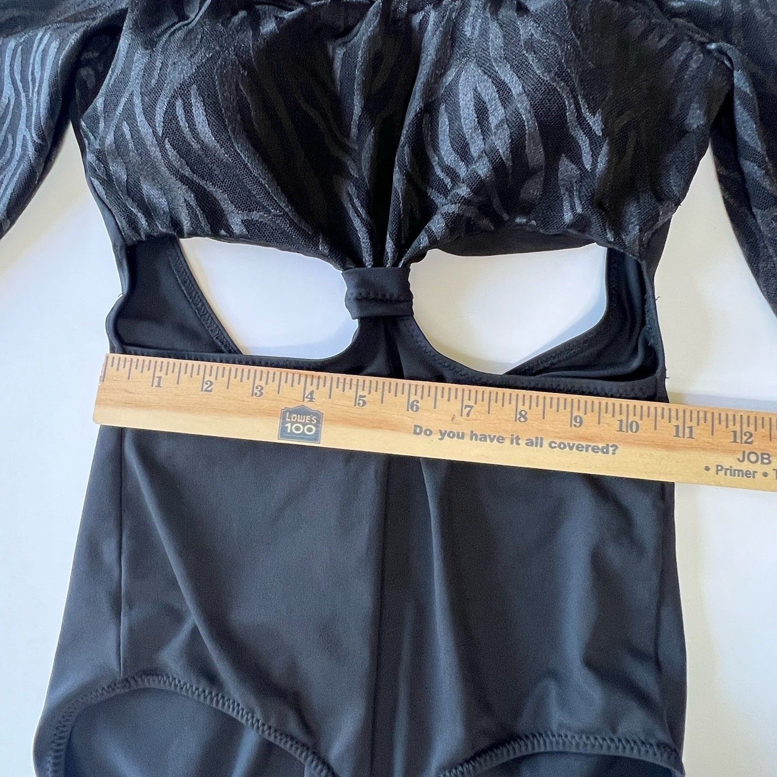 Danz N Motion Gymnastics Dance Leotard Long Sleeve Zebra Print Black Size L
