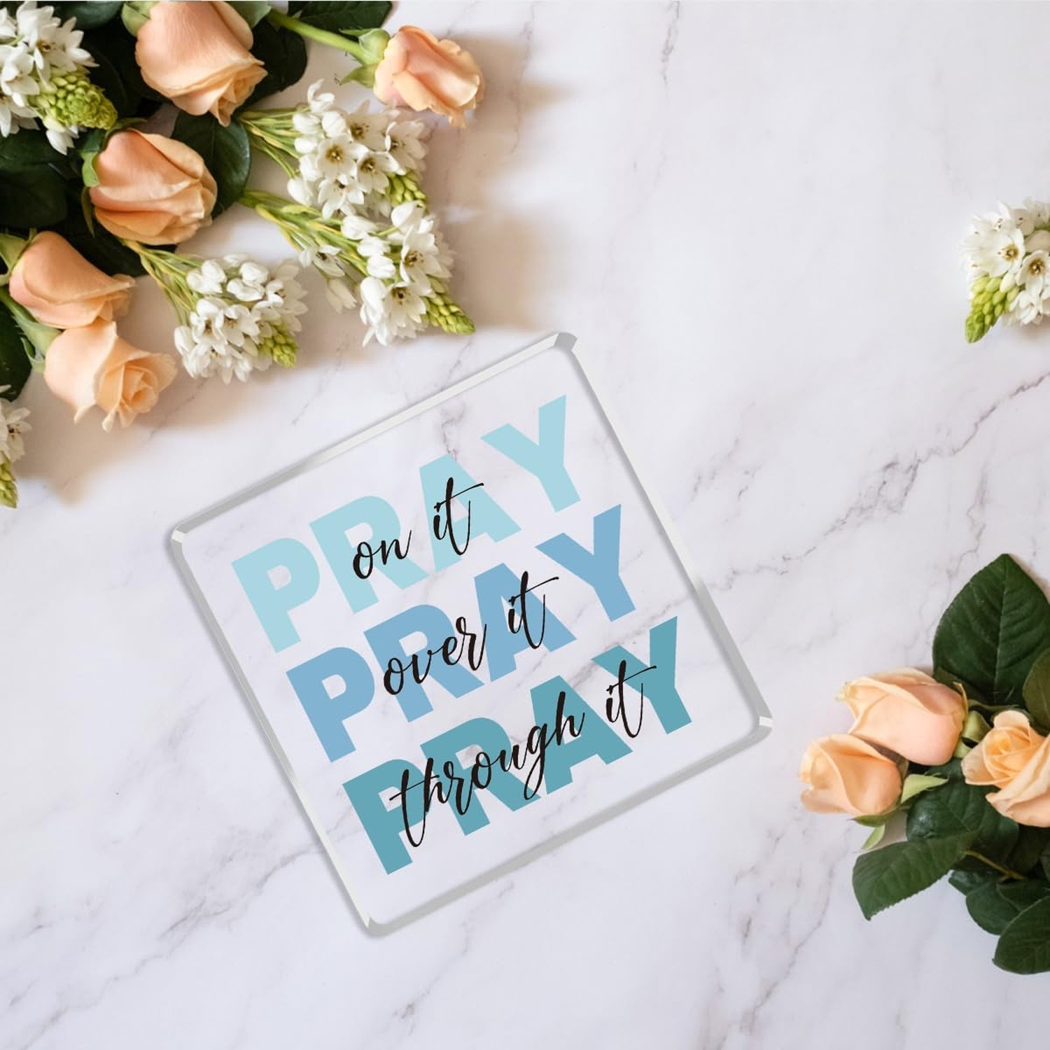 Religious Gifts for Women - Pray on it Pray over it Pray through it Acrylic S...