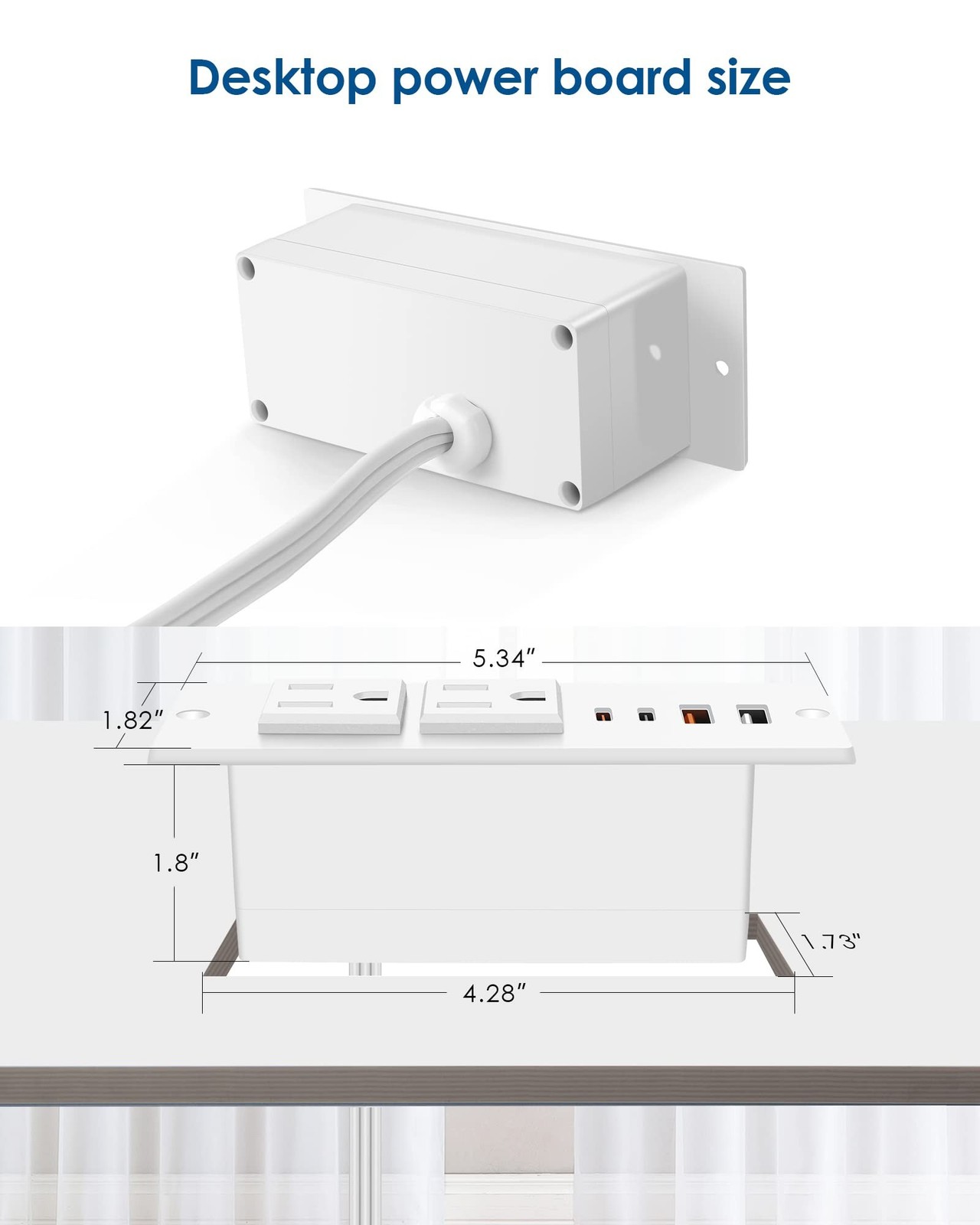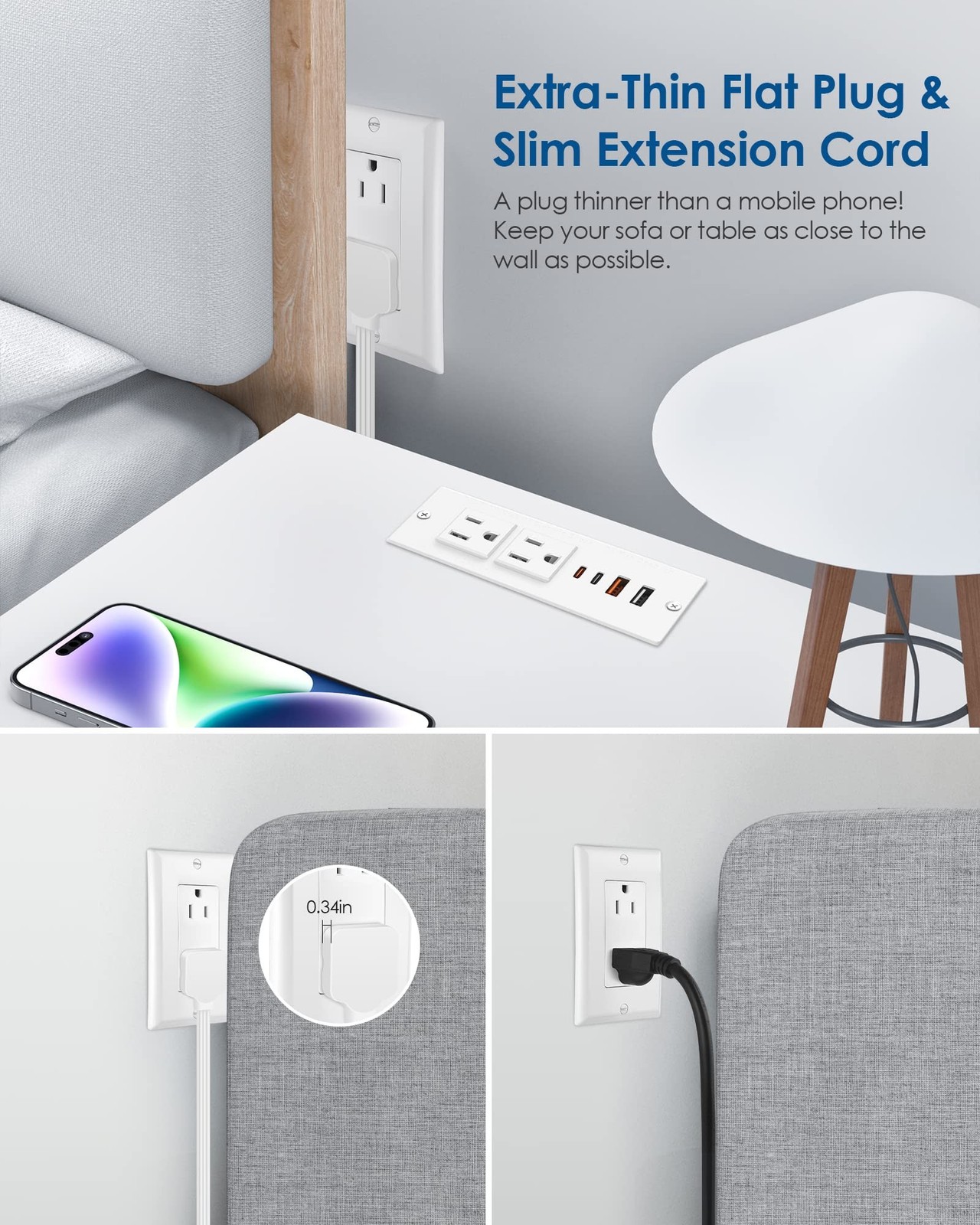 30W USB C Recessed Power Strip,Flat Plug Power Strip,2 Outlets 4 USB Ports,Fu...
