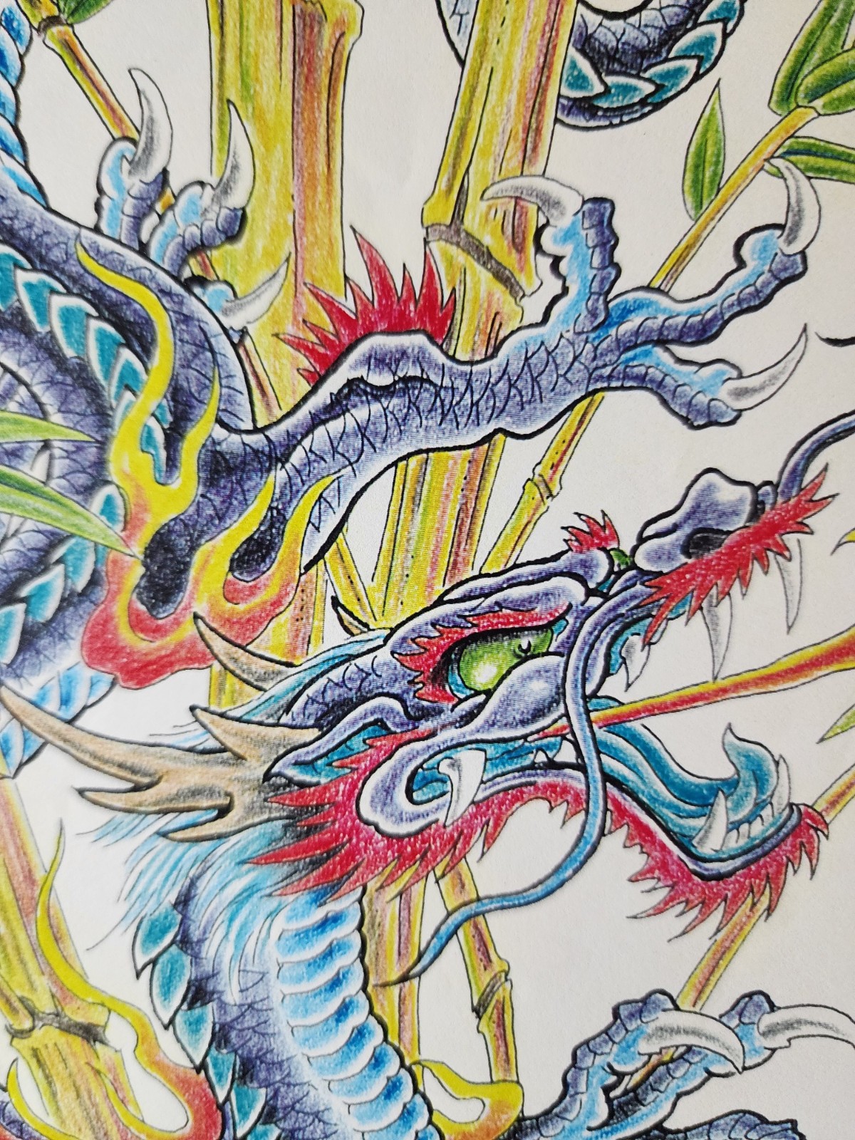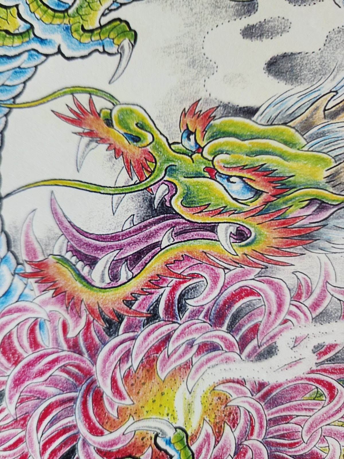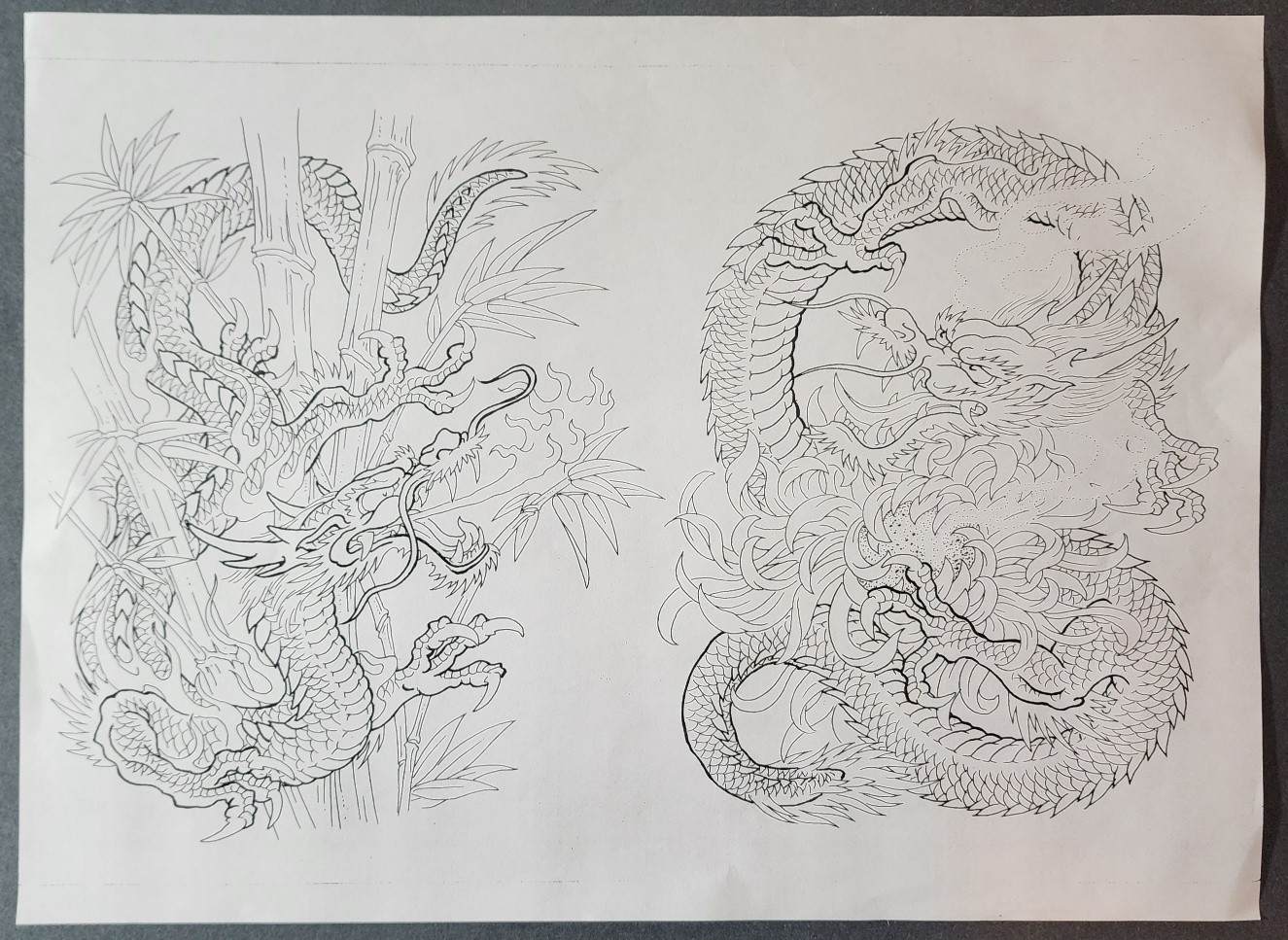 как выглядит Vintage Paul Jeffries Japanese Traditional Tattoo Flash Sheet With Lines Dragons фото