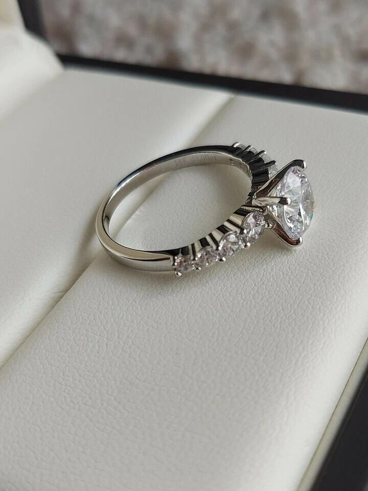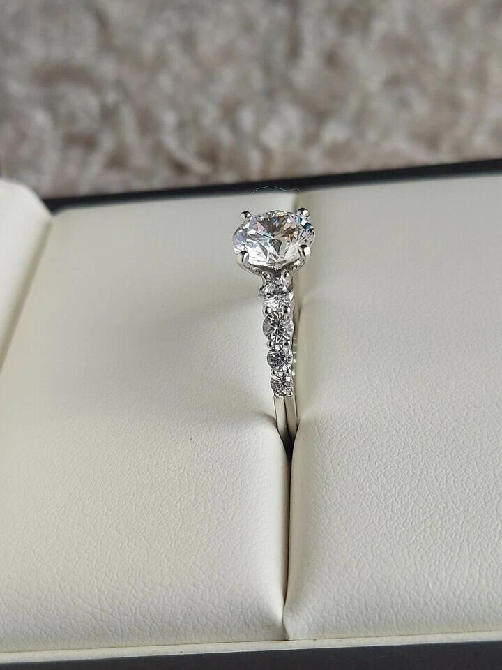 как выглядит 2Ct Round Cut Lab Created Diamond Engagement Wedding 14K White Gold Finish Ring фото