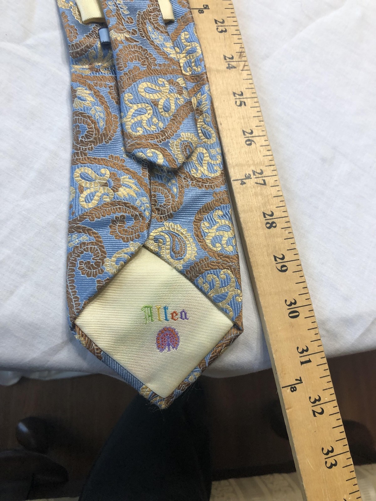как выглядит Altea Tie Mens Blue Gold Paisley 100 Silk Hand Made Italy Classic Necktie фото