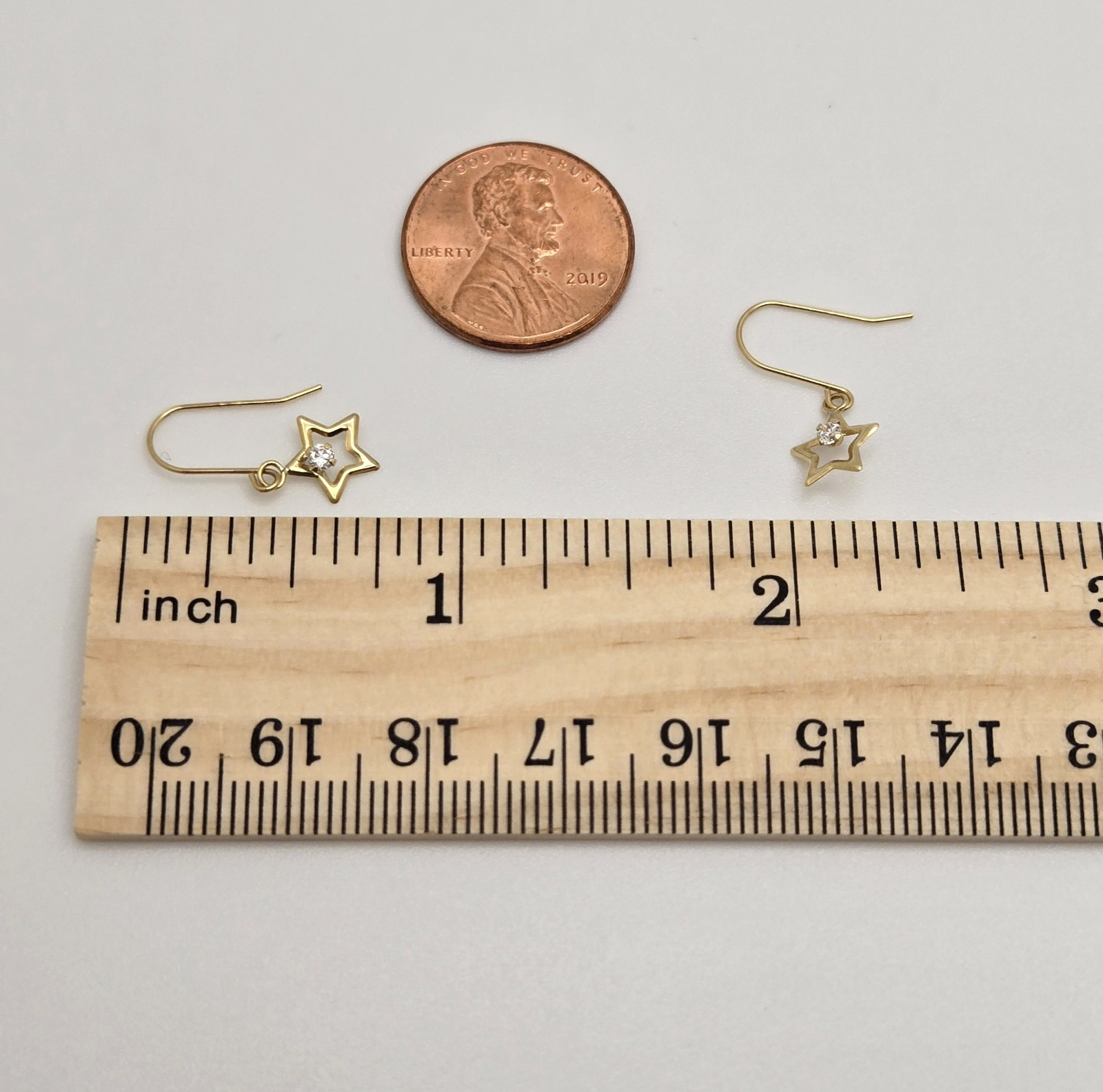 как выглядит Star Earrings 14k Yellow Gold Cubic Zirconia Drop Pierced Dainty Twee Kawaii NEW фото
