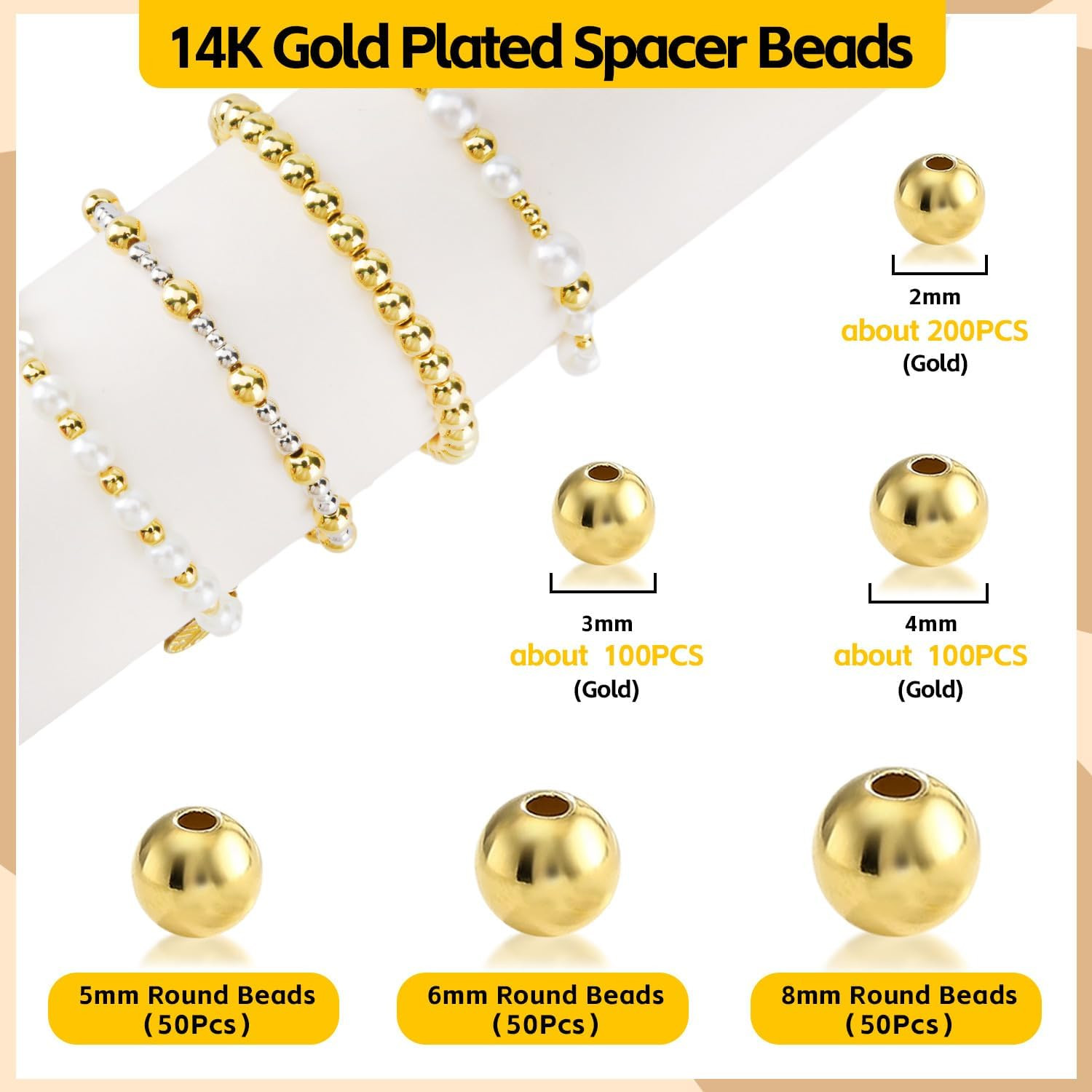 как выглядит 100Pcs 14K Gold Filled Spacer Beads, 2/3/4/5/6/8mm Round Loose Beads for Jewe... фото