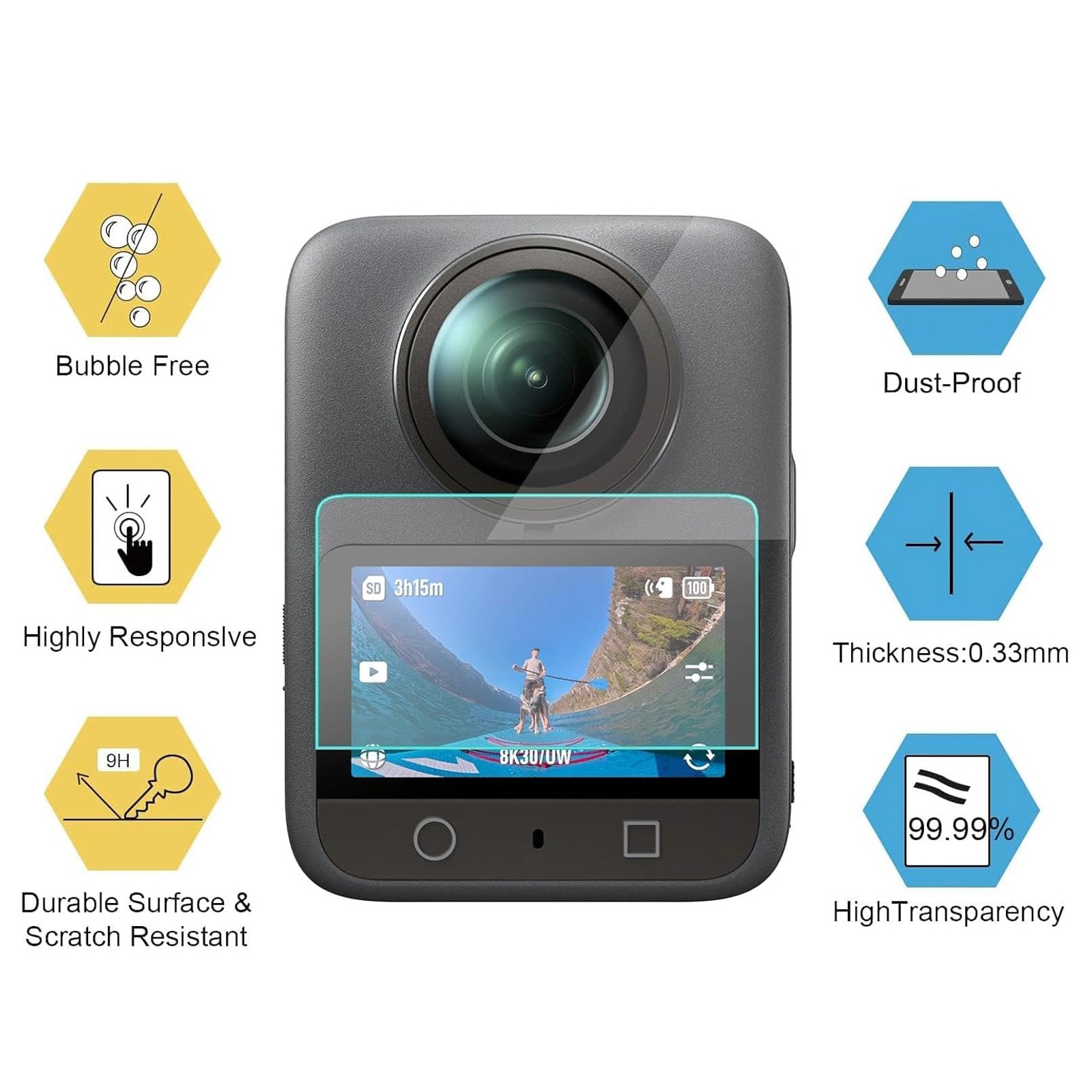2 Pack 9H Hardness HD Tempered Glass Screen Film Protector for DJI Osmo 360