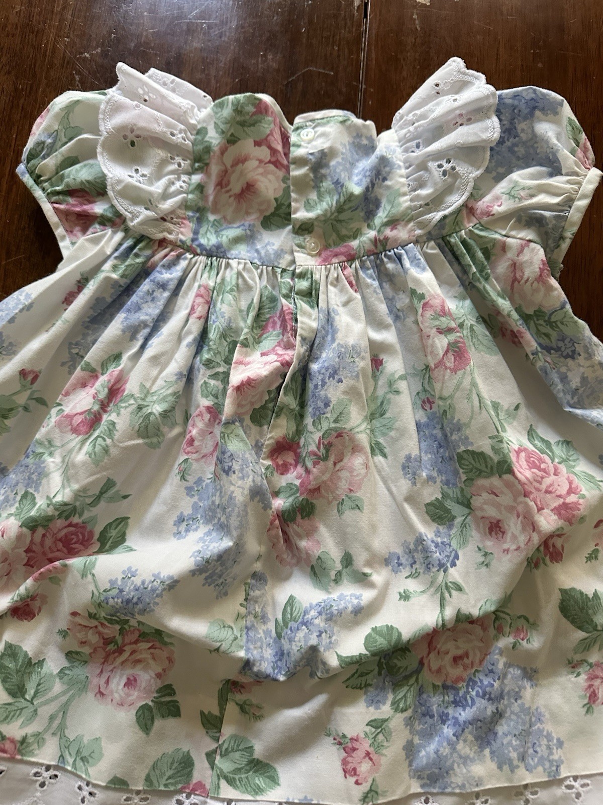 как выглядит VTG Girls Toddle Tyke 2T Dress Pink Roses Eyelet Hem Cottage Core USA Made фото