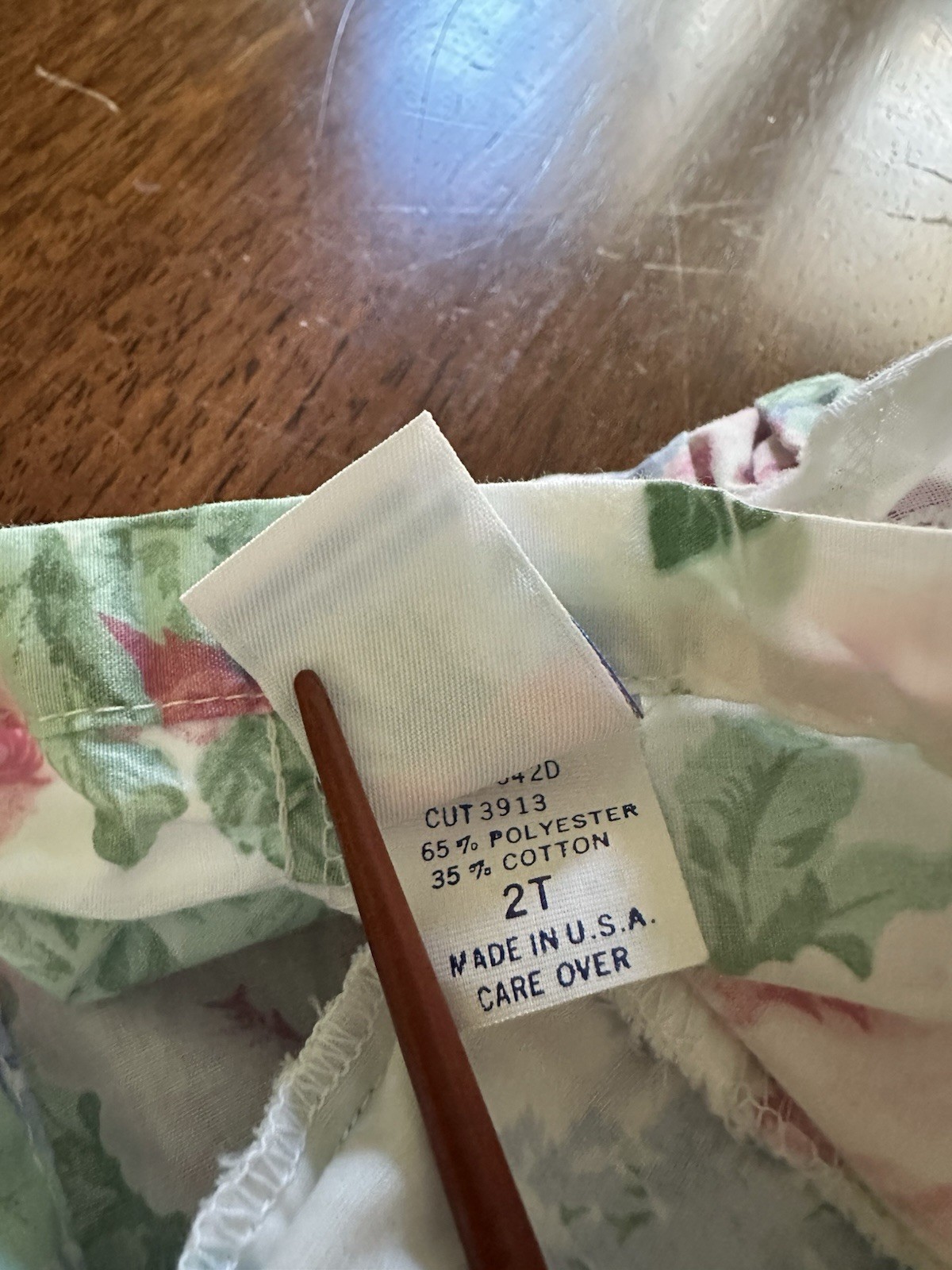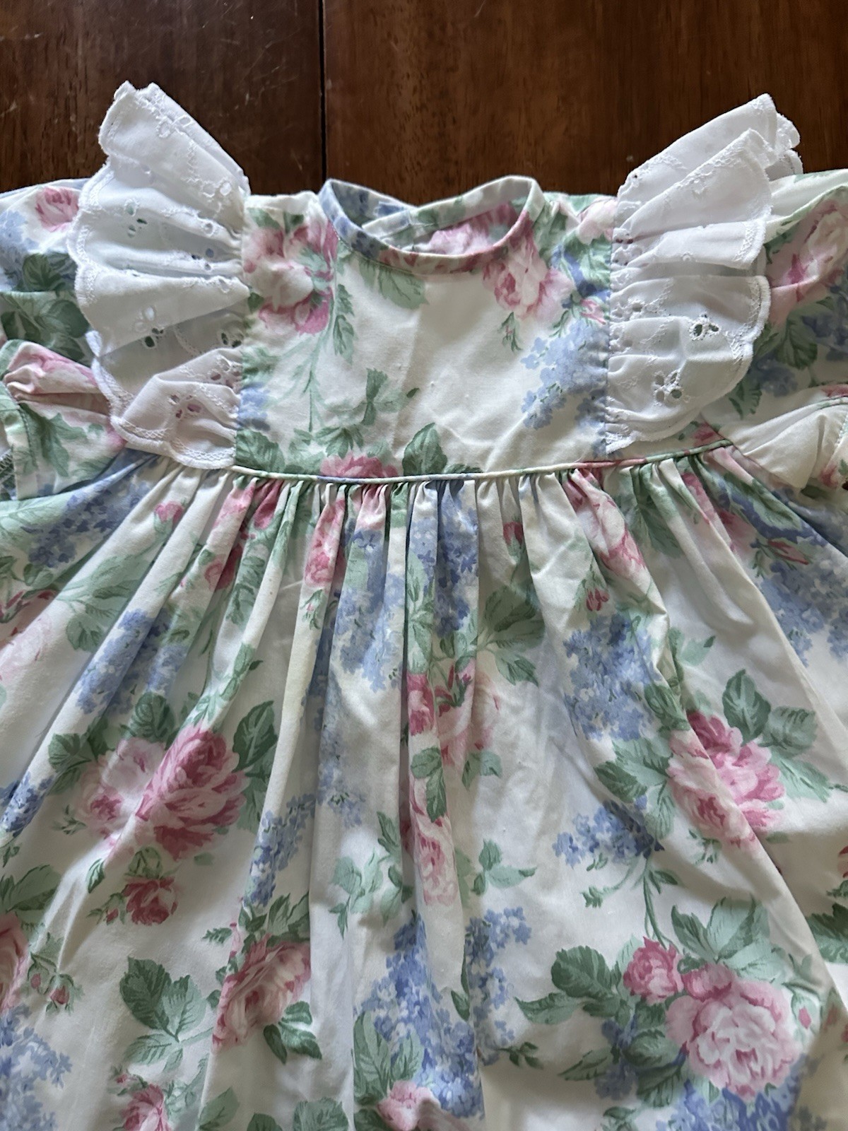VTG Girls Toddle Tyke 2T Dress Pink Roses Eyelet Hem Cottage Core USA Made