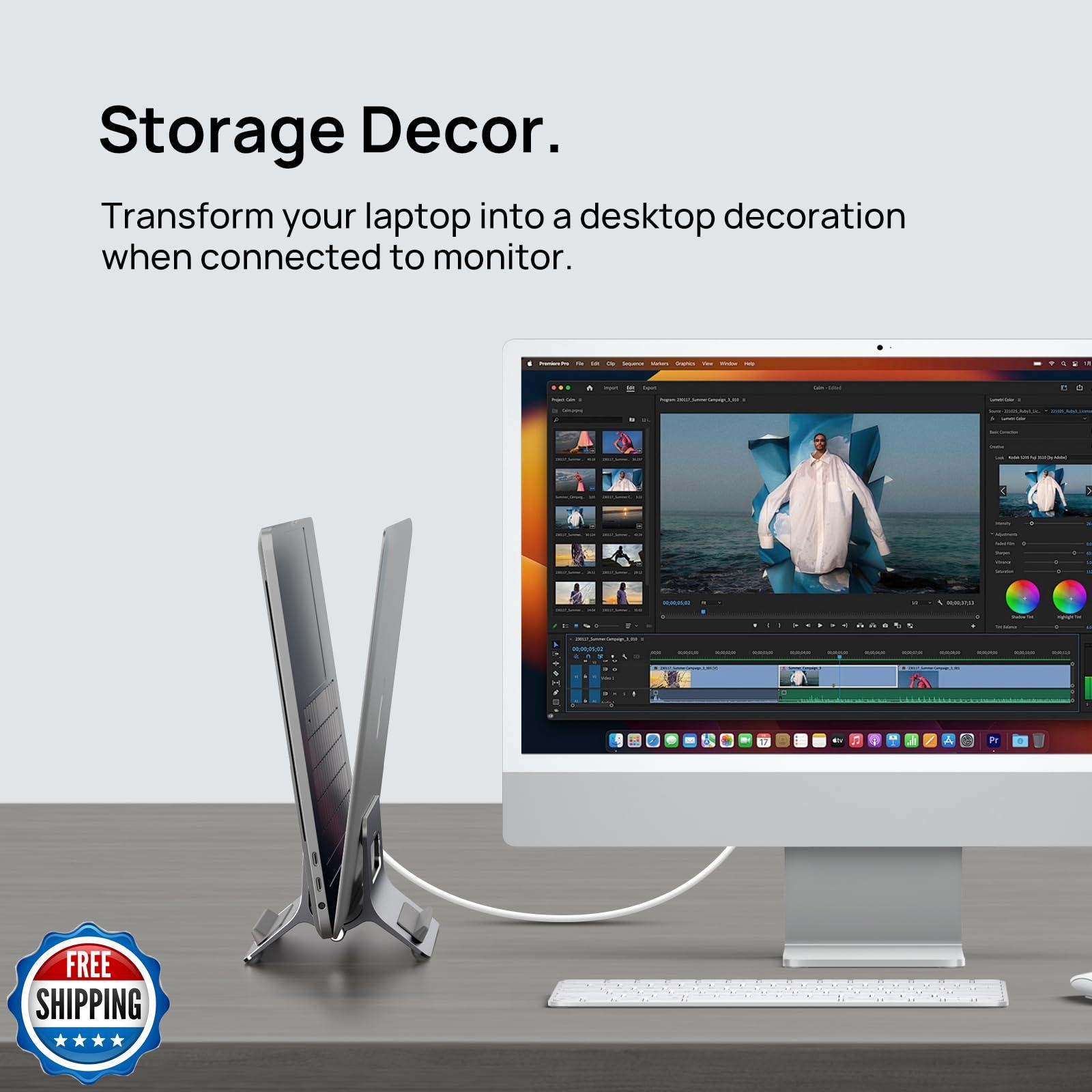 SODI Vertical Laptop Stand for Desk, Gravity Auto Lock MacBook Stand, Aluminu