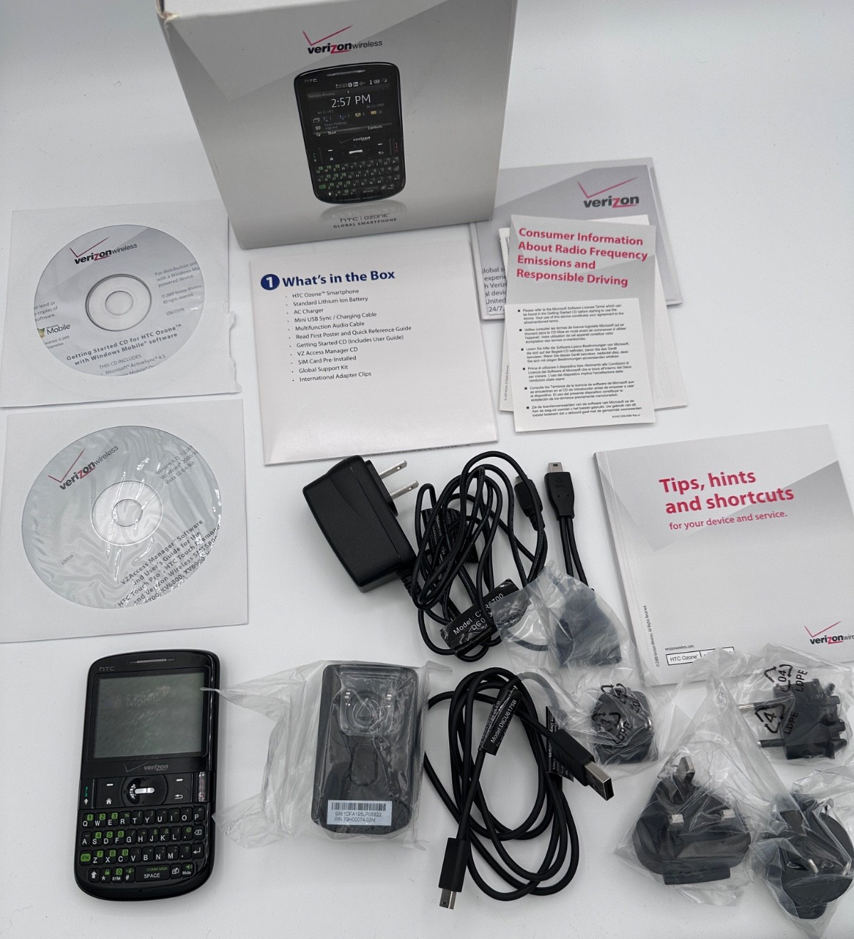 UNTESTED Old Verizon HTC Ozone Global Smartphone w/ Original Box Discs -PARTS