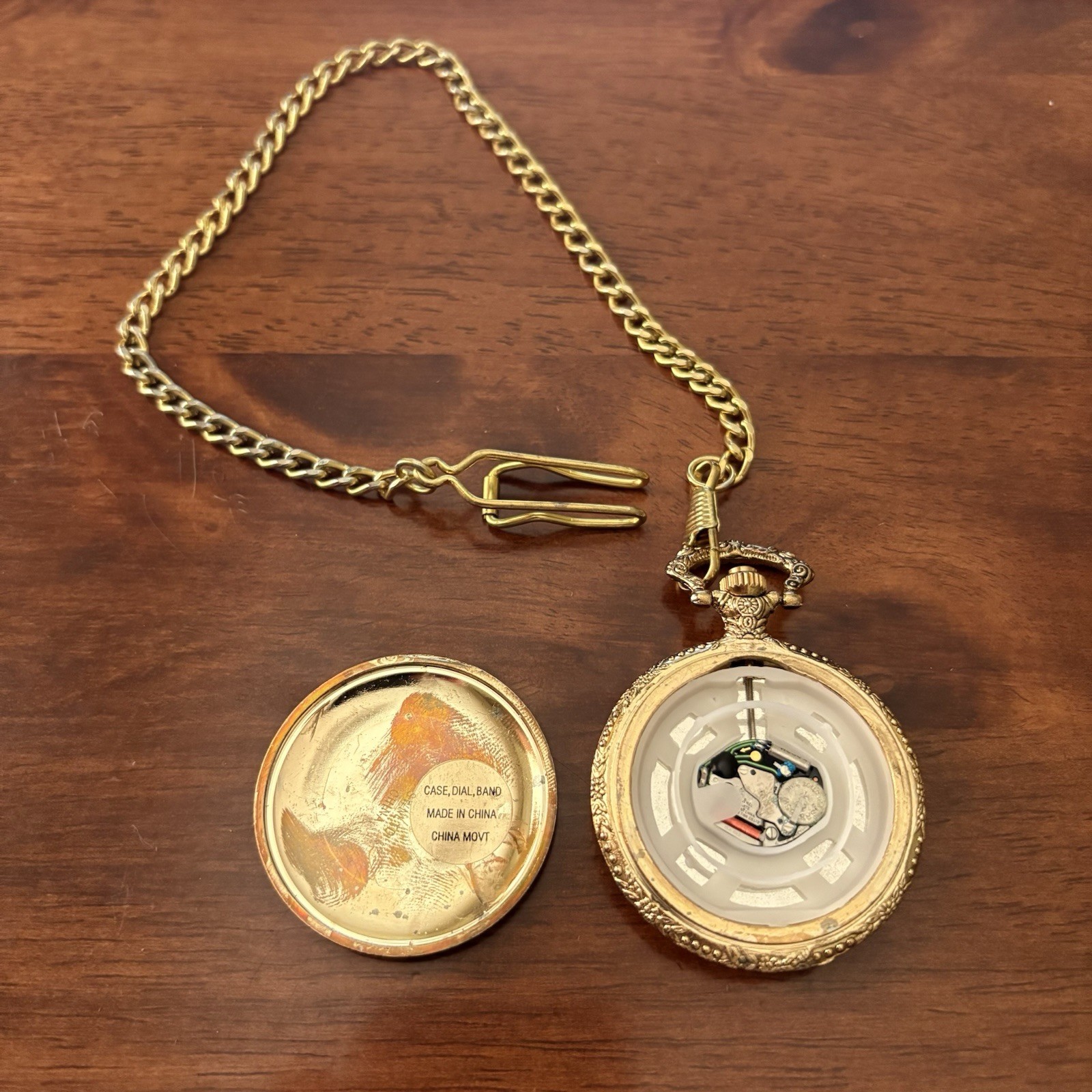 Vintage Quartz Goldtone Ornate Pocket Watch Chain - Made In China