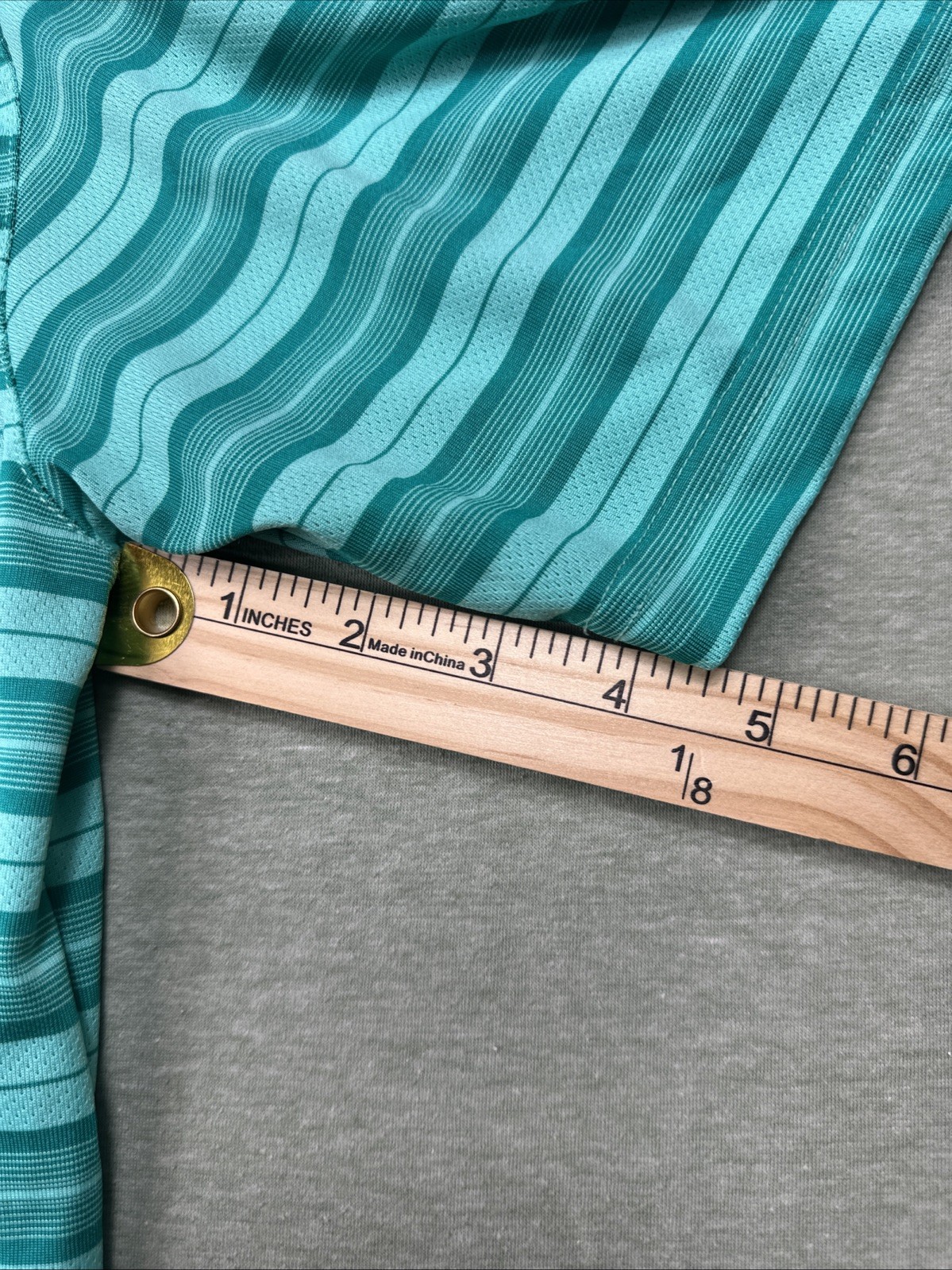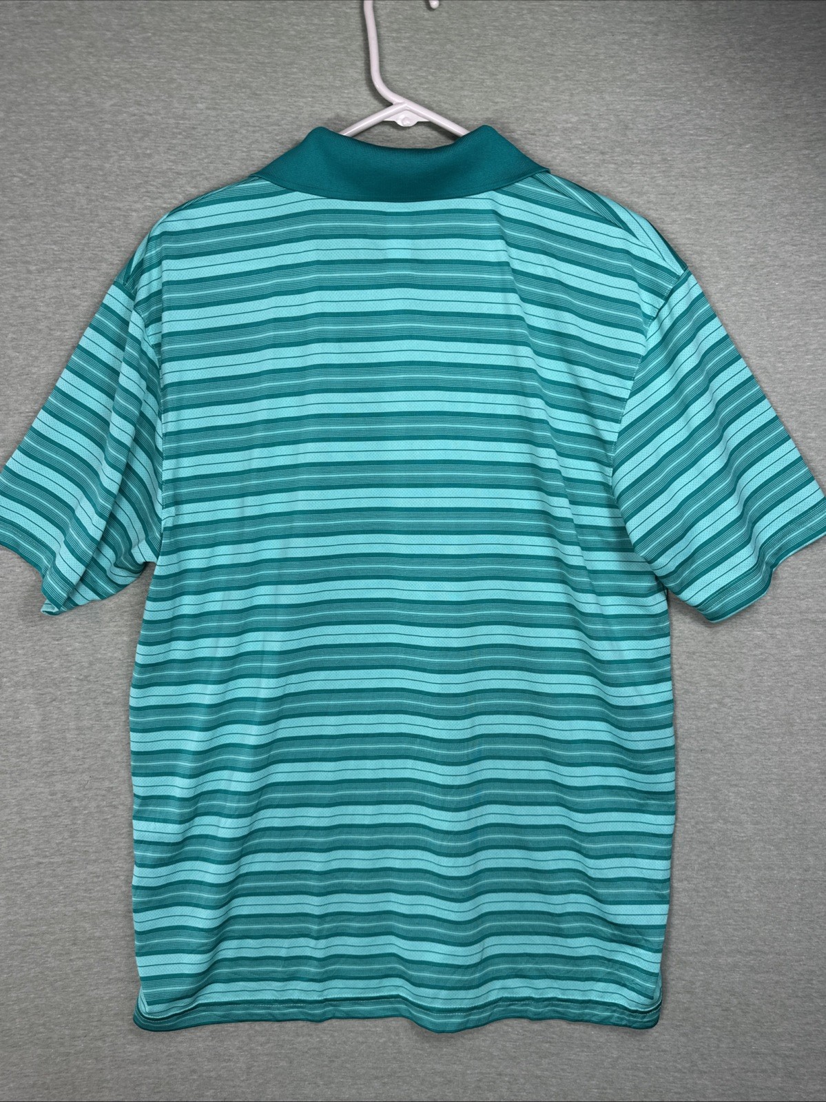 PGA Tour Mens L Airflux Golf Polo Shirt Green Blue Striped Performance Athletic