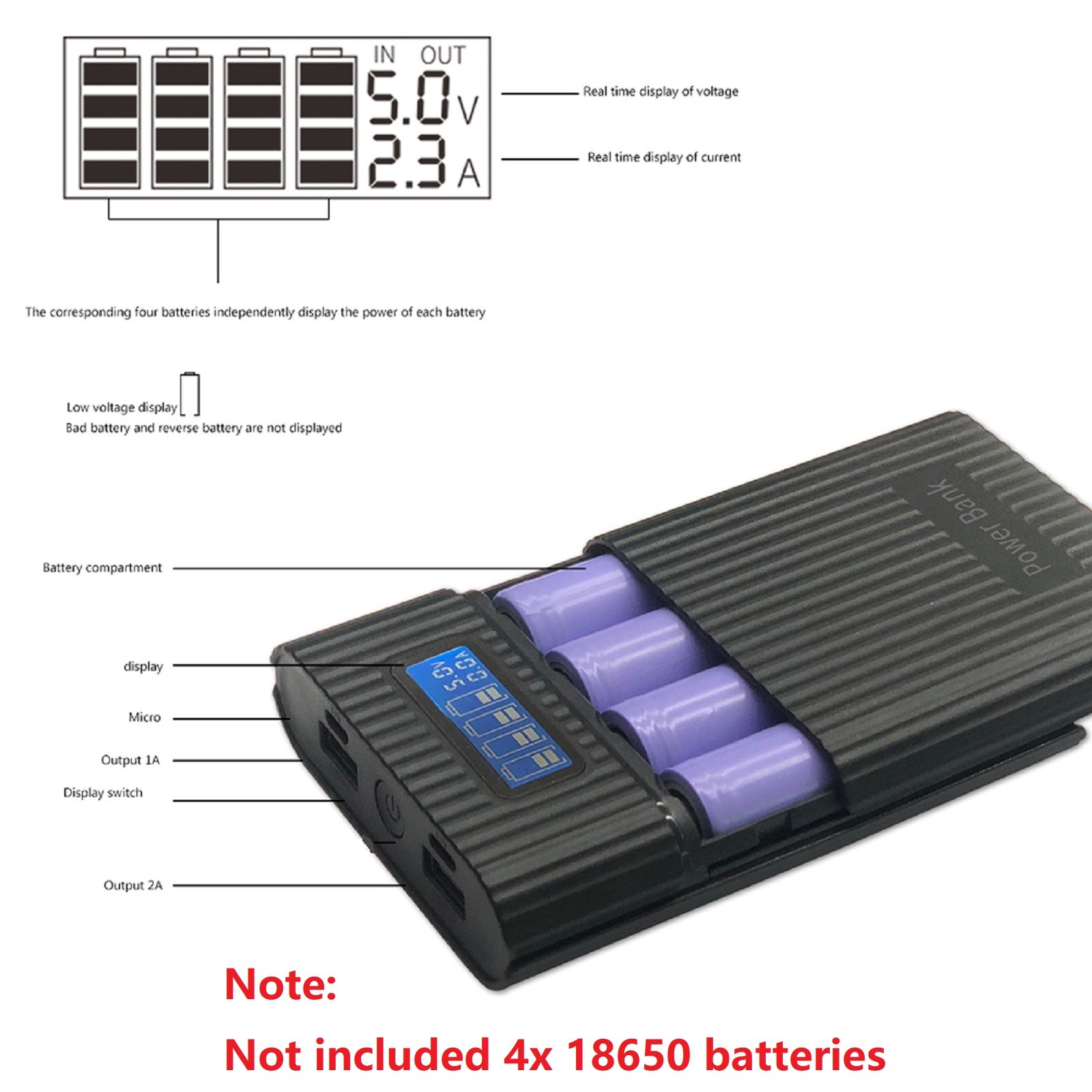 как выглядит 4X18650 Battery Charge Storage Box 5V 2A Dual USB Type C DIY Power Bank Case фото