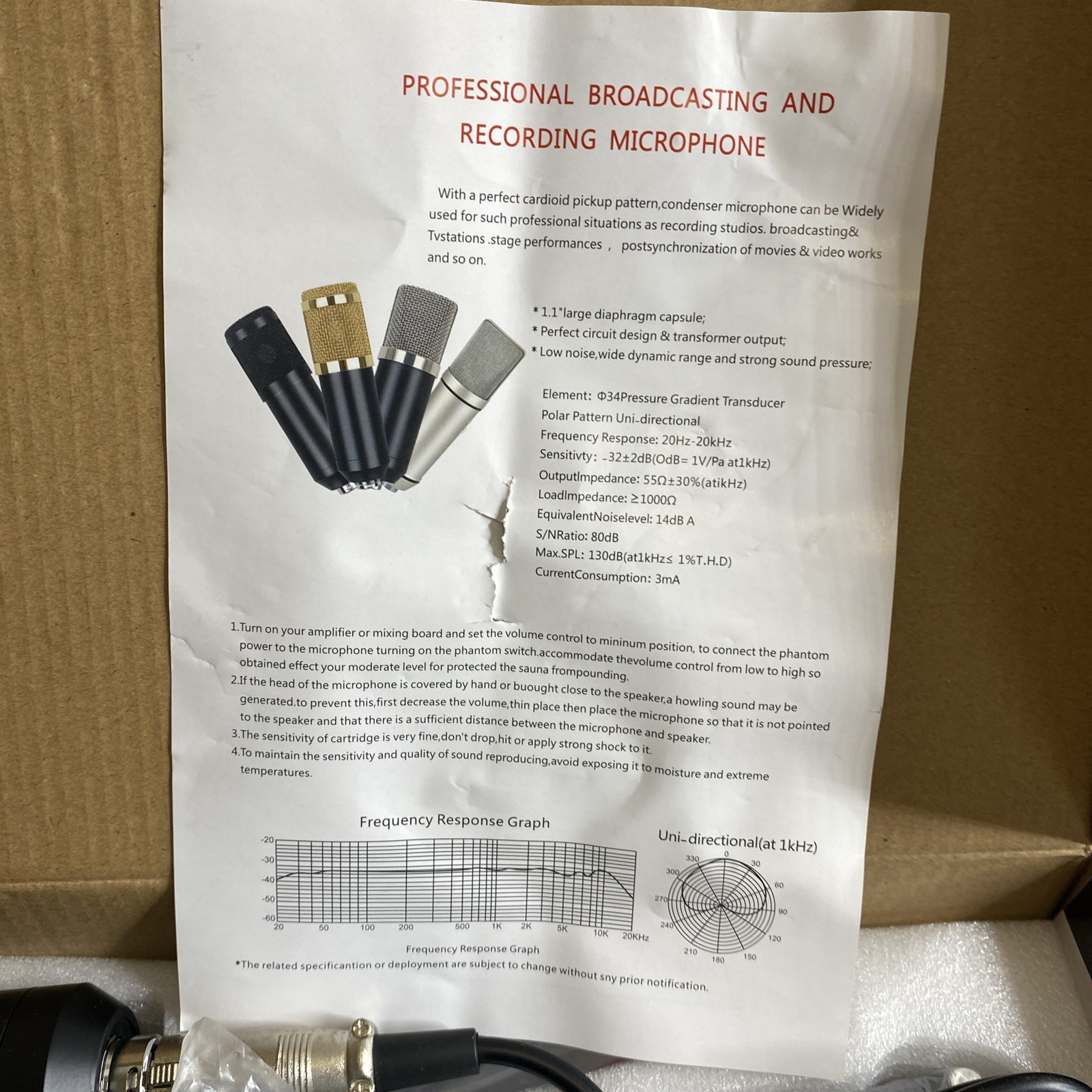 Professional Condenser Microphone With Patented Audio Reference Companding-New