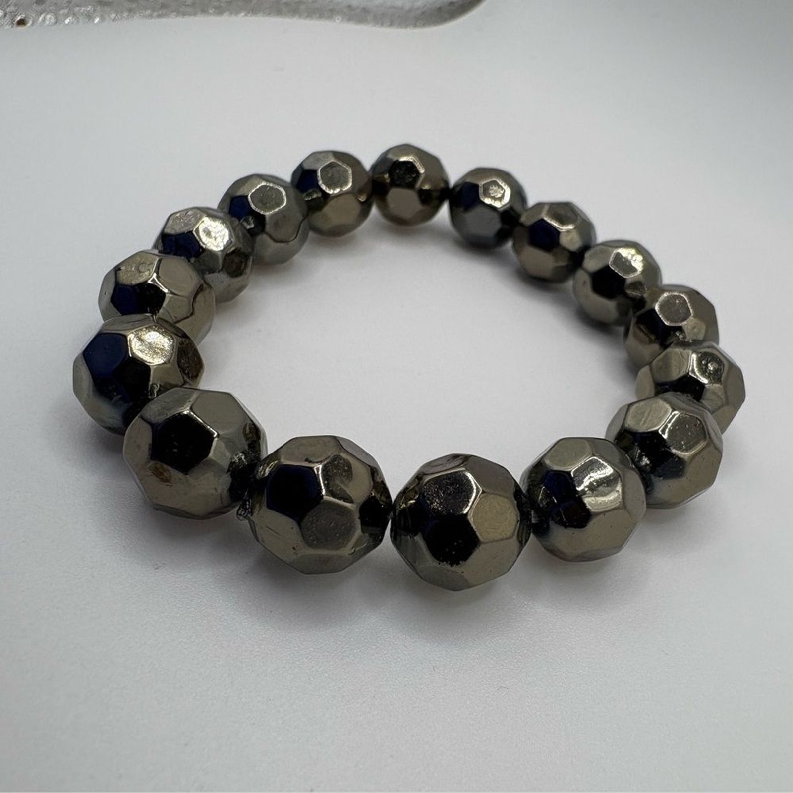 • Faceted Hematite Bead Stretch Bracelet Metallic Gunmetal Tone