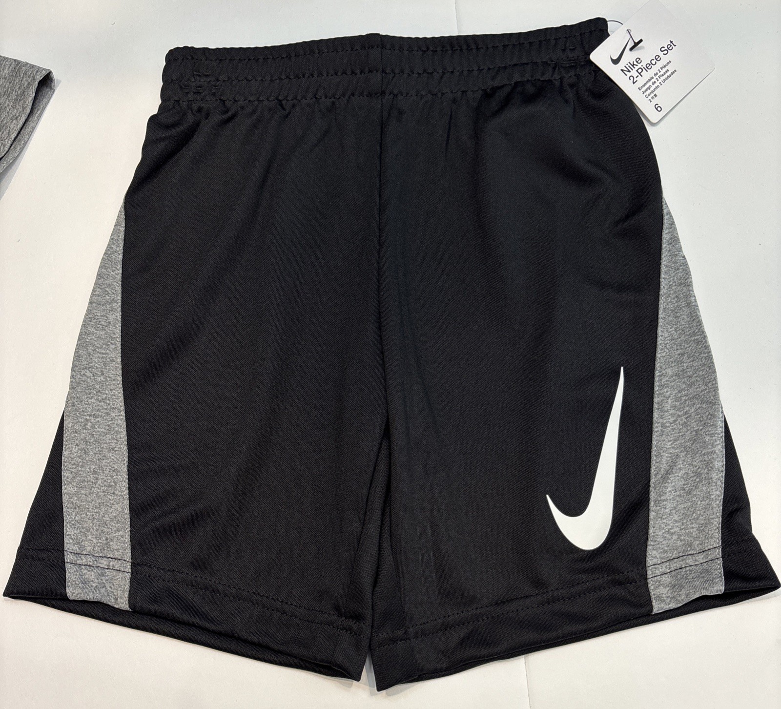 Nike Dri-Fit Boys 2 Piece Gray/Black/white Short Set Size 6 Brand New