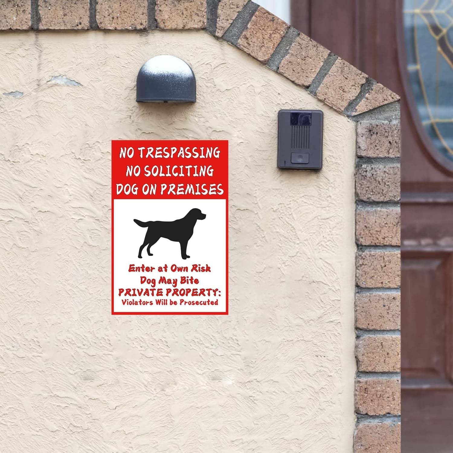 Tin Metal Sign Dog No Trespassing Sign No Soliciting Wall Art 8x12