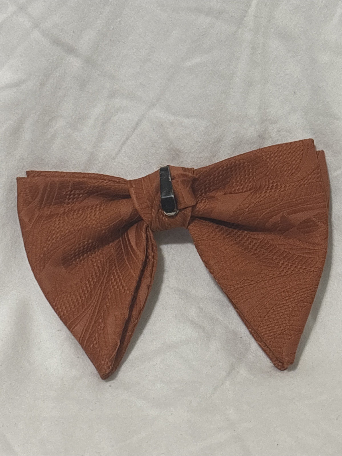 Vintage 70 s Butterfly Bow Tie Terra Cotta Orange Polyester Clip On Wedding Prom