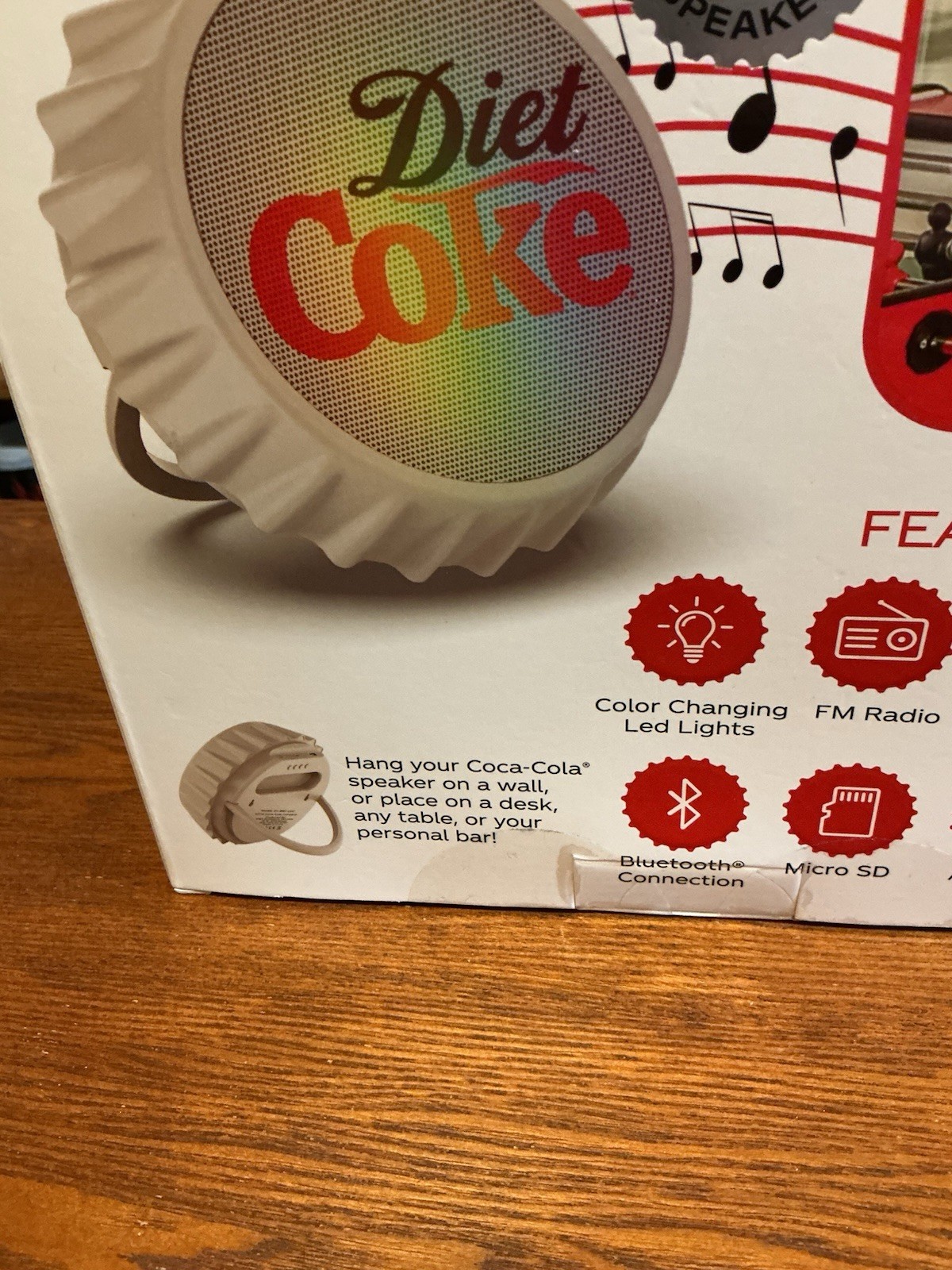 • Diet Coke Bottle Cap Speaker LED Multicolor Lights USB / Bluetooth / FM Radio