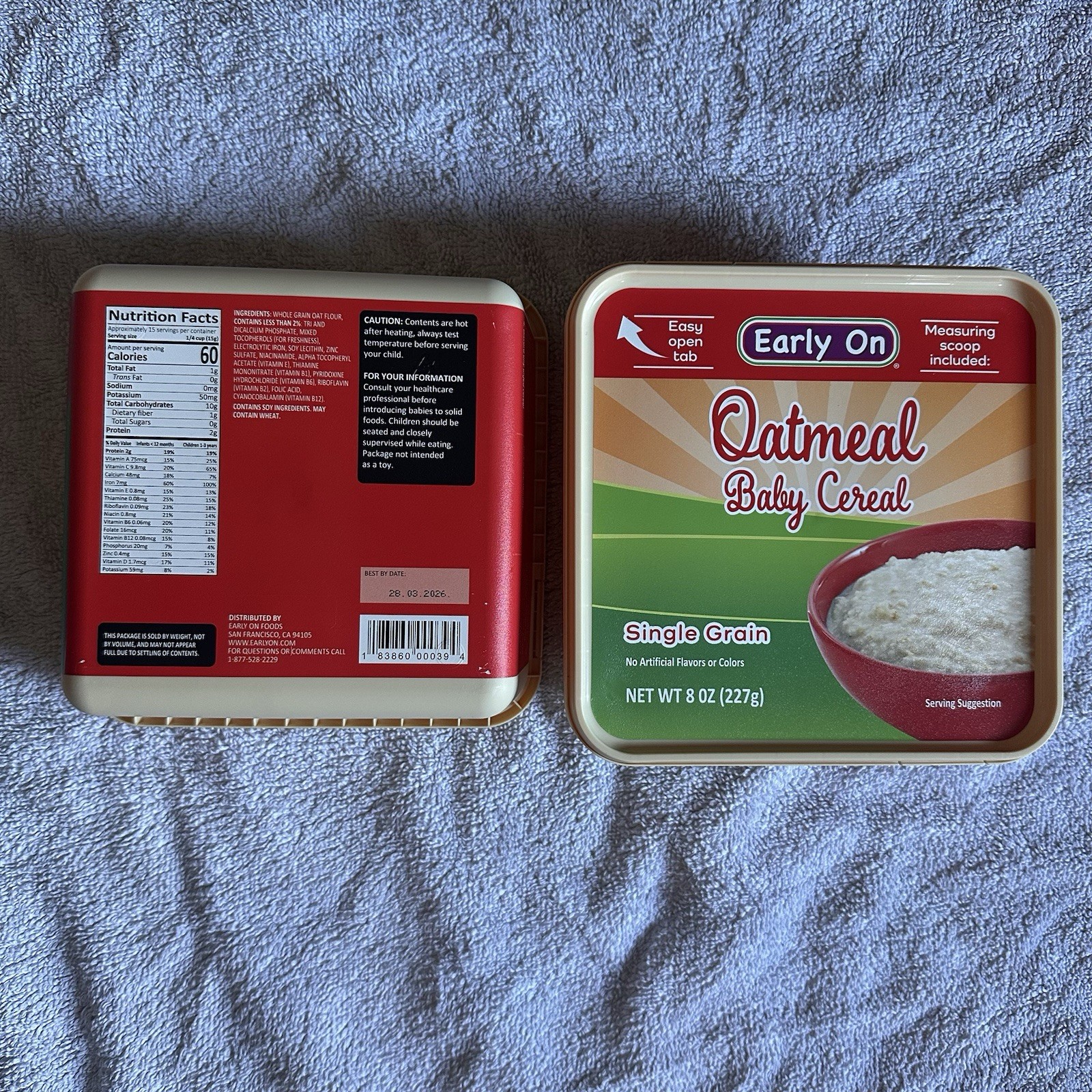 Oatmeal Baby Cereal Single Grain, 8 Oz, Pack Of 2, Best By 03/28/2026