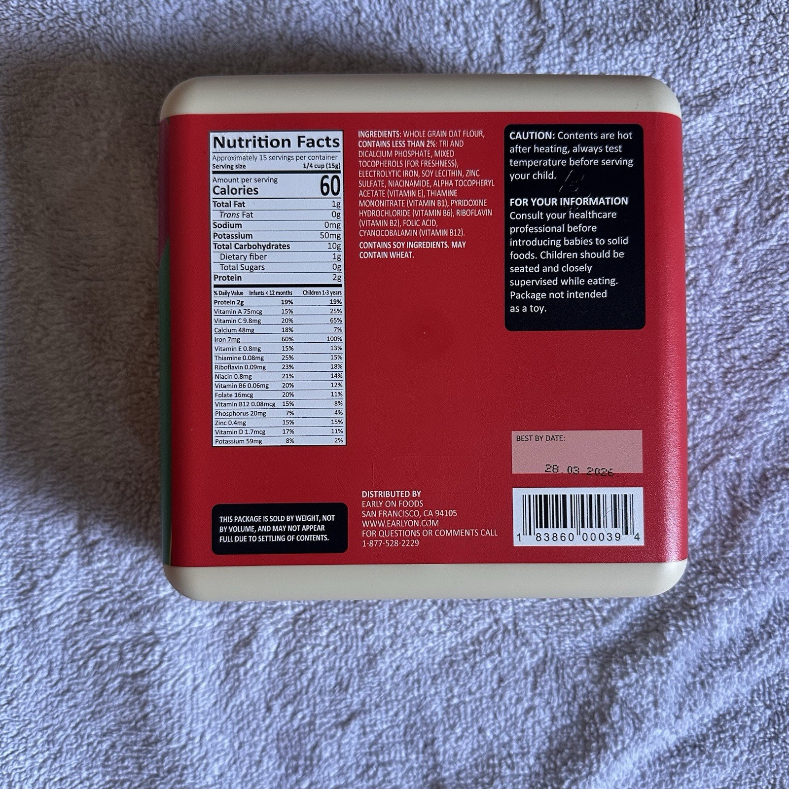 как выглядит Oatmeal Baby Cereal Single Grain, 8 Oz, Pack Of 2, Best By 03/28/2026 фото