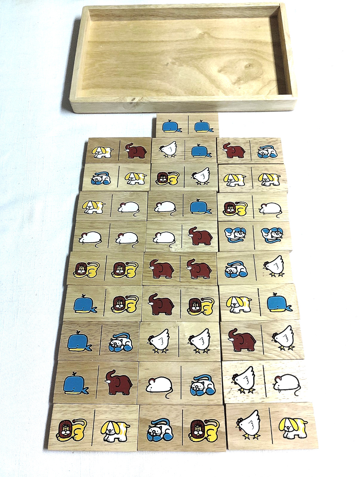 Complete Vintage Animal Picture Wooden Dominoes by Plain Toys 2407
