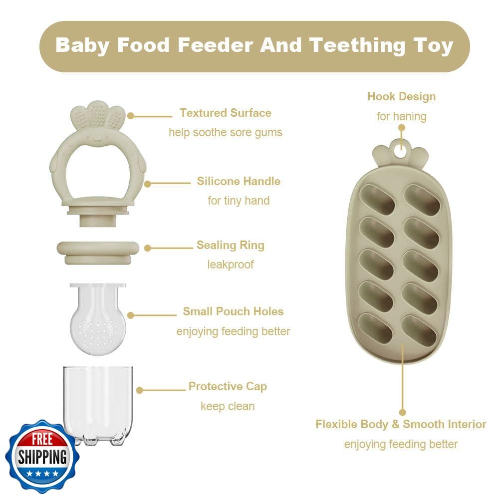 Baby Fruit Feeder with Freezer Tray Silicone Baby Teethers Food Feeder Freeze