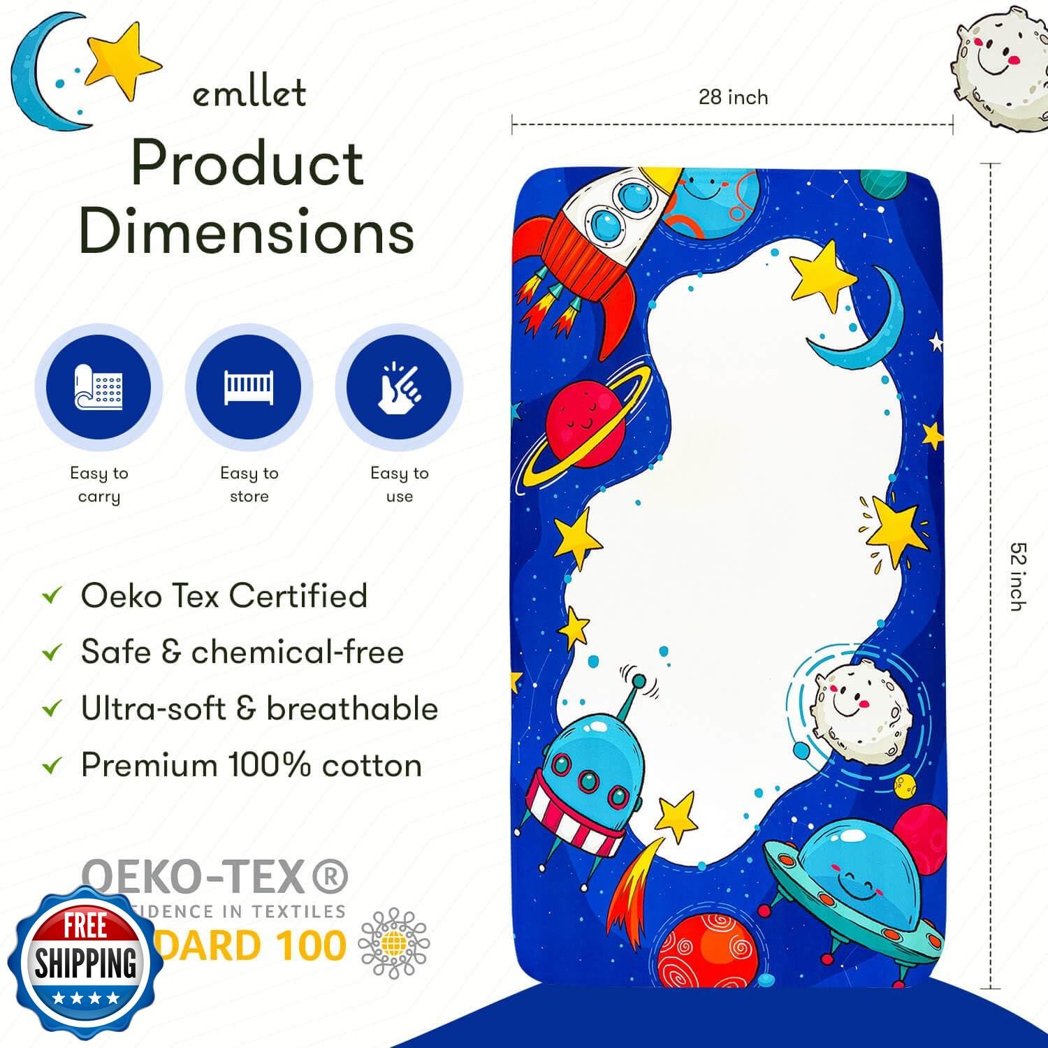 100 Cotton Fitted Crib Sheet Cosmic Adventure Space Theme, Soft Nursery Be