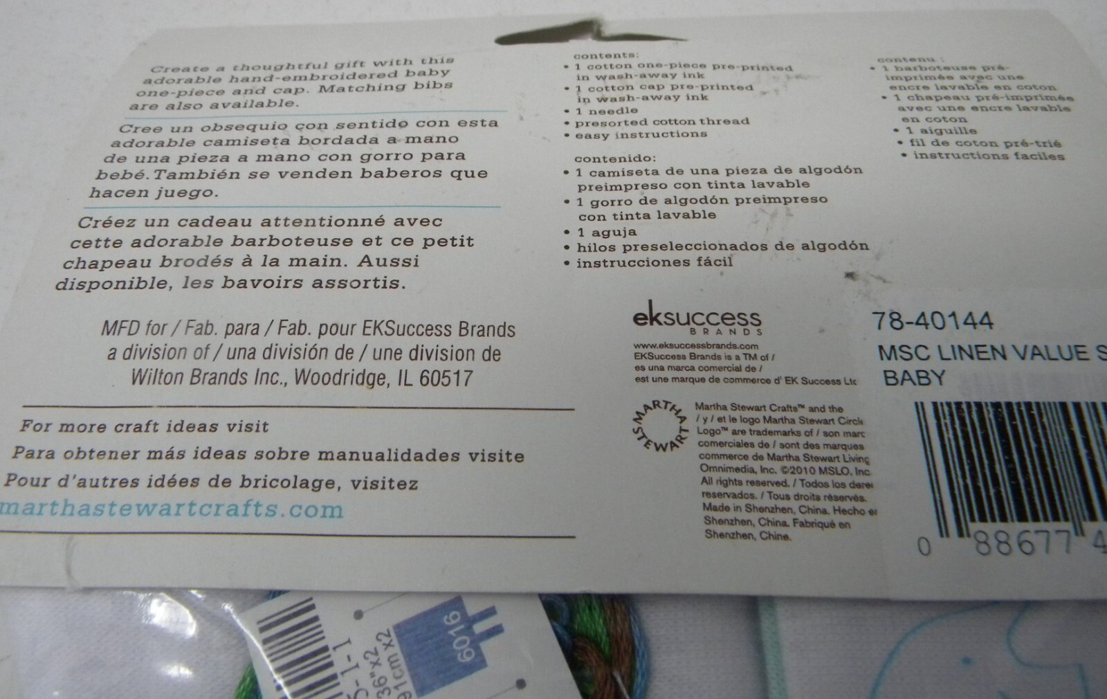 Martha Stewart One Piece Cap Hand Embroidered Kit White Green 9-12 months
