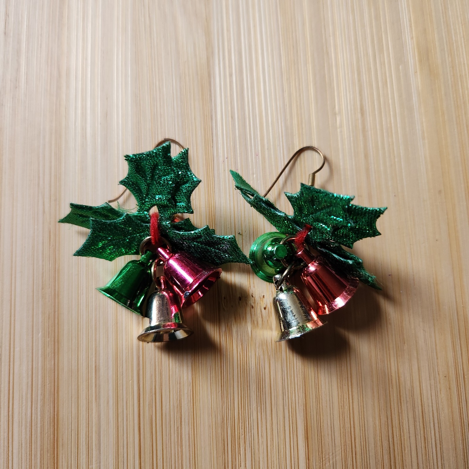 Holly Berry Jingle Bells Earrings Christmas Holiday Jewelry