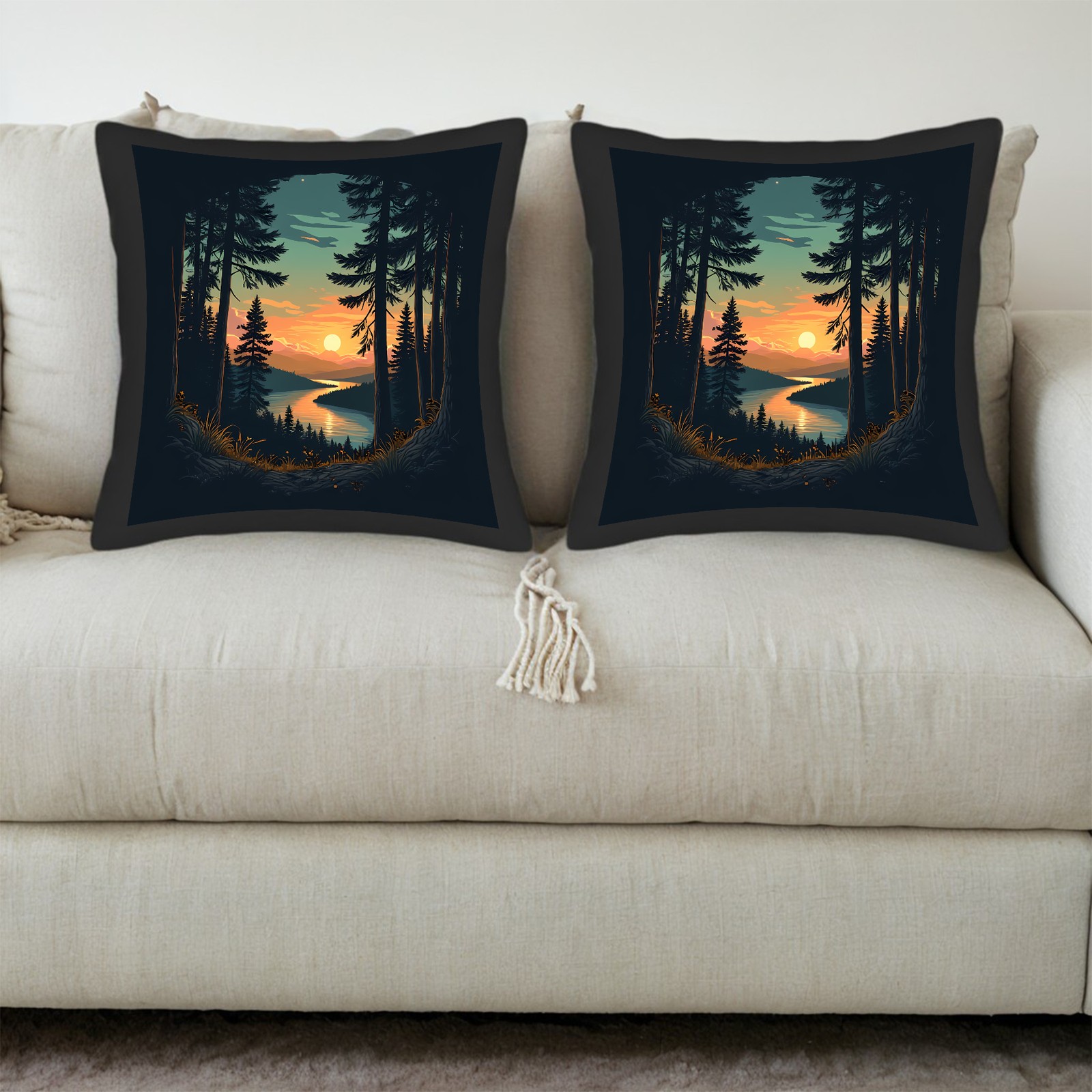 Set of 2 18x18in Throw Pillow Covers - Serene Forest Sunset Design