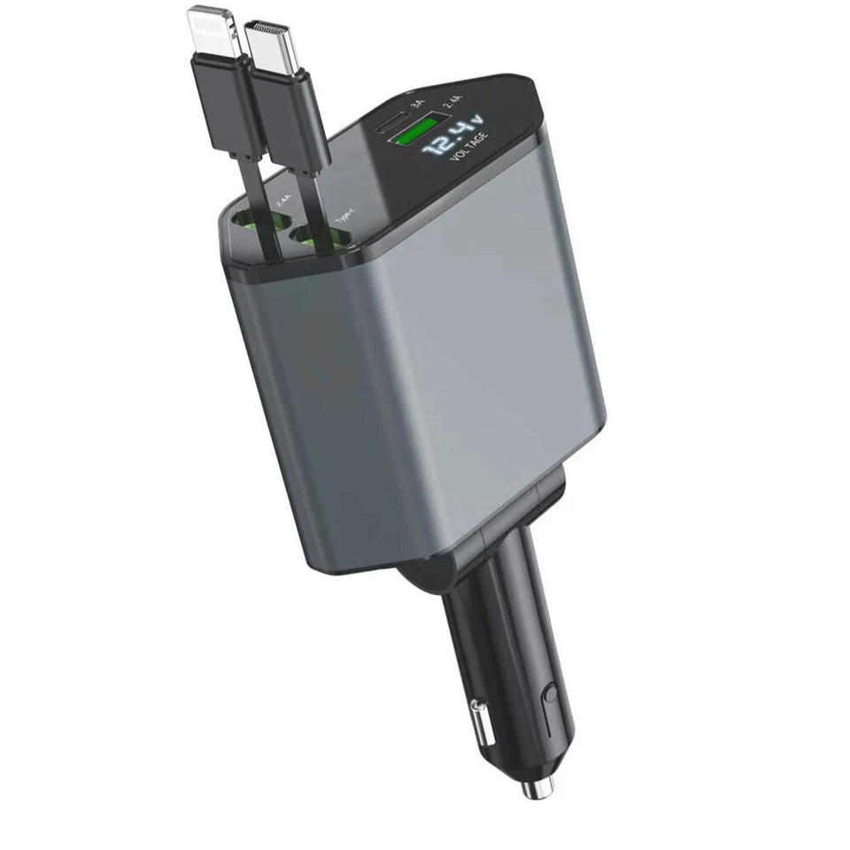 4 in 1 Retractable Car Charger Fast Car Phone Charger 120W With USB Type C Cable