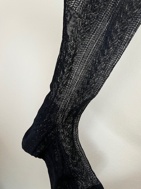 Antique Victorian Ladies Black stockings, Fine detailed lacing, 1900's