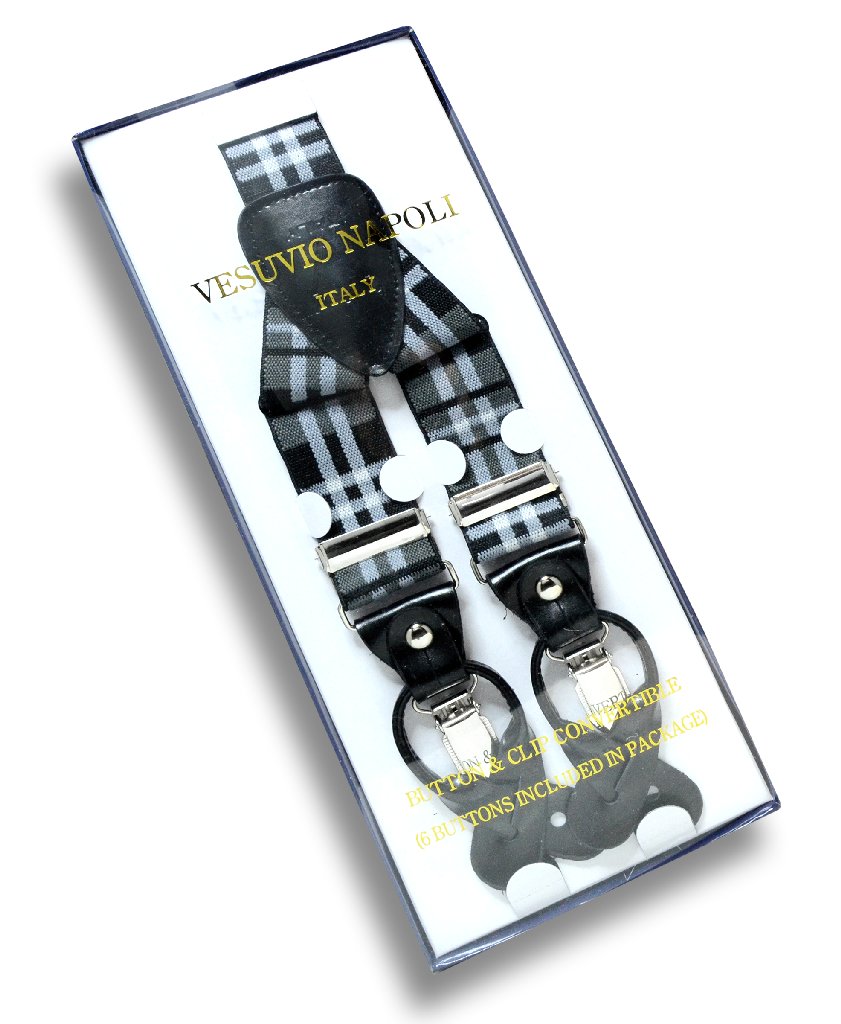 Men's SUSPENDERS Y Shape Back Elastic Button Clip Convertible Plaid and Print