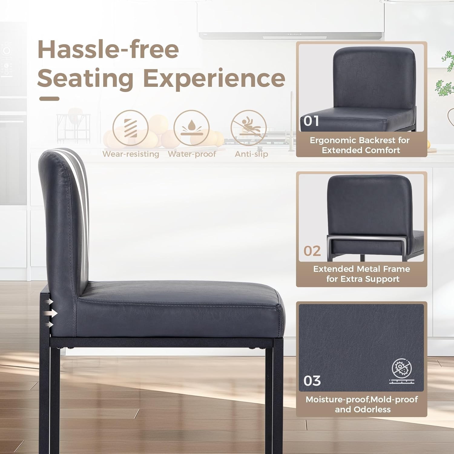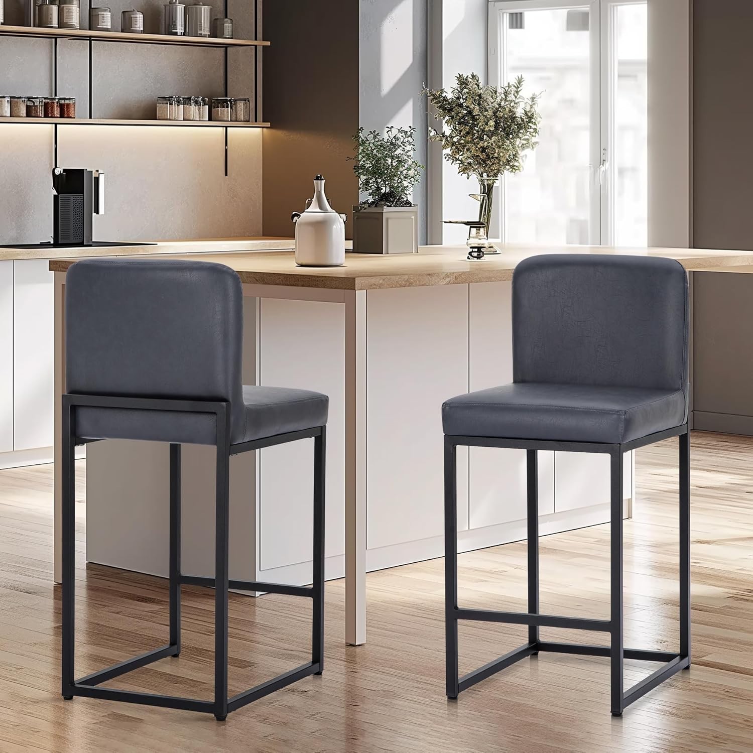 Set of 4 Leather Bar Stools Counter Height Kitchen Stools with Back Support 24.