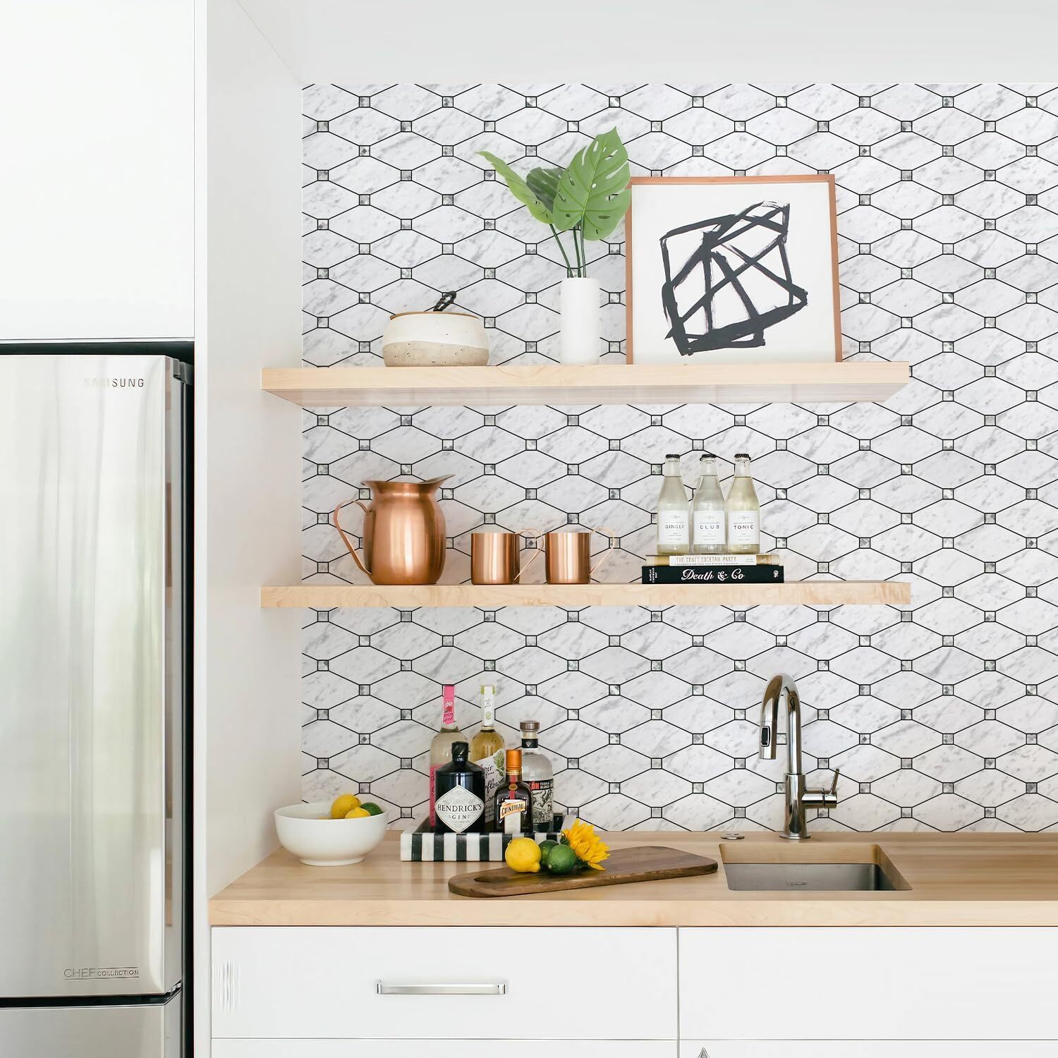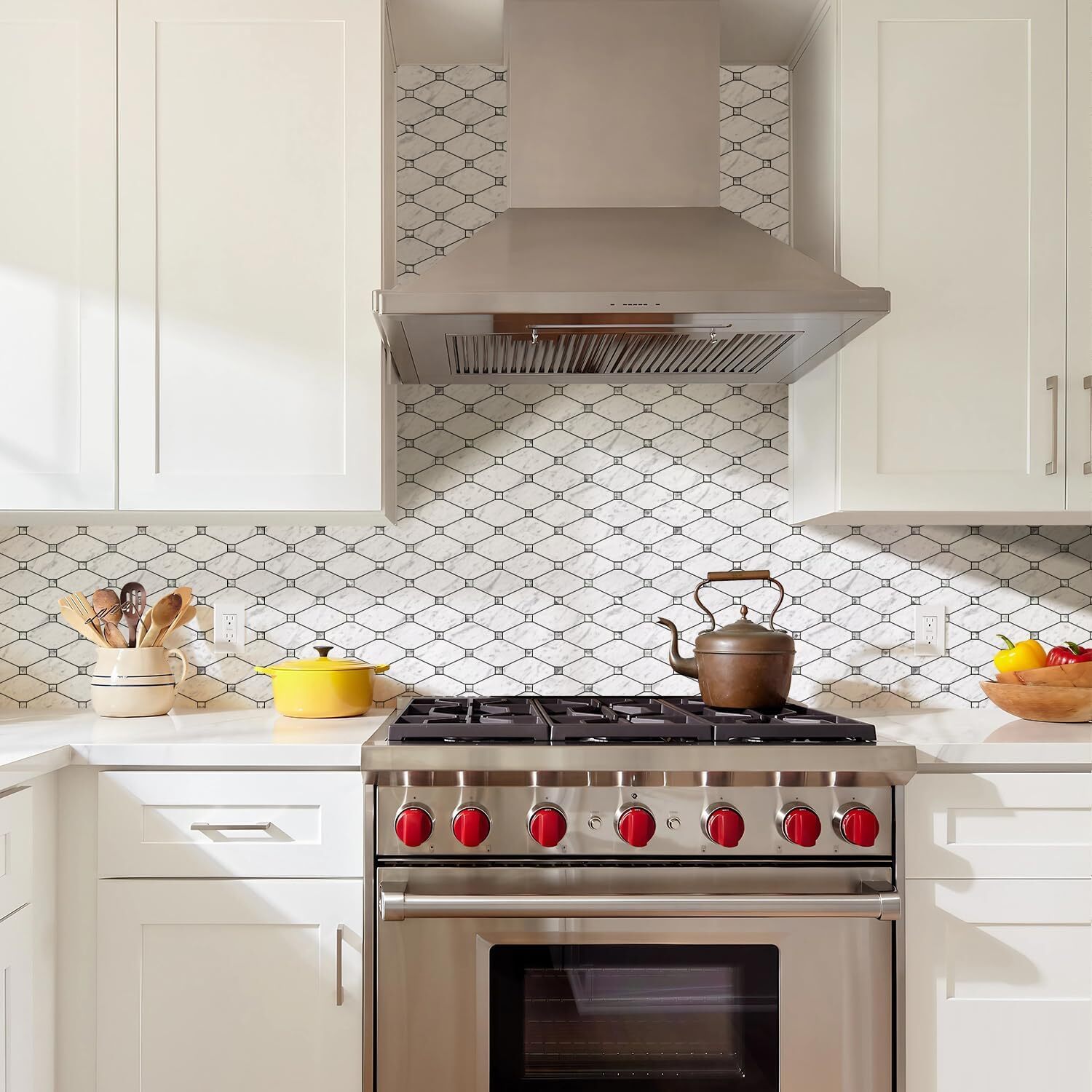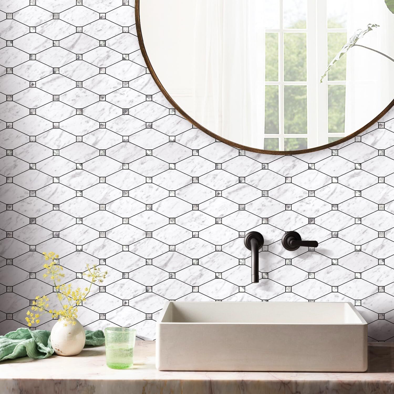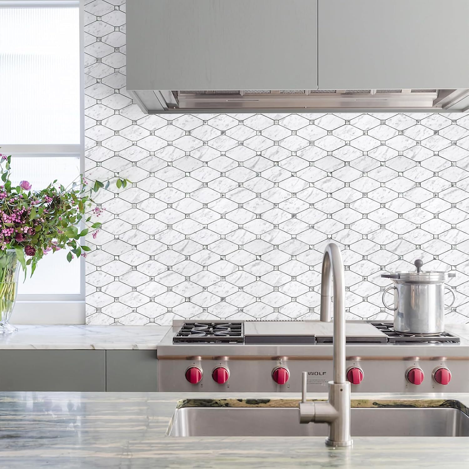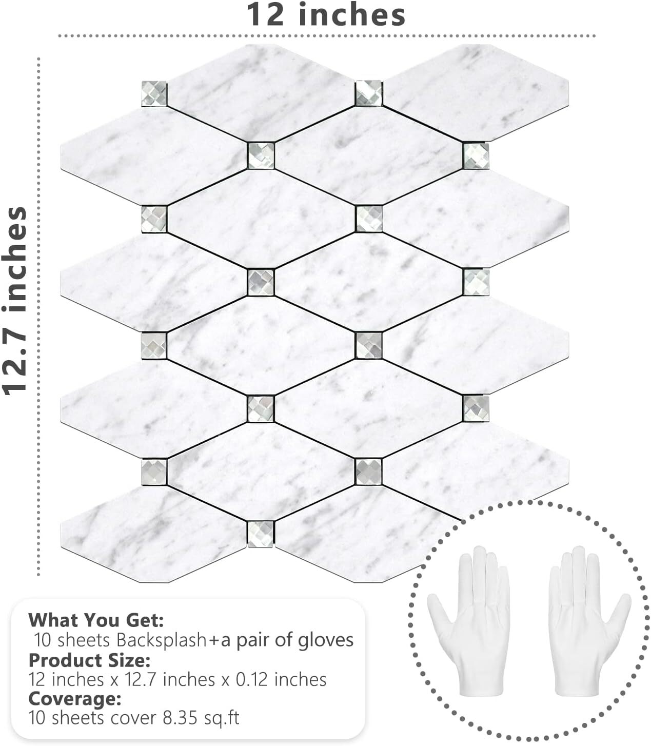 10 Sheets Peel and Stick Backsplash, Carrara White Stick on Mosaic Tiles for.