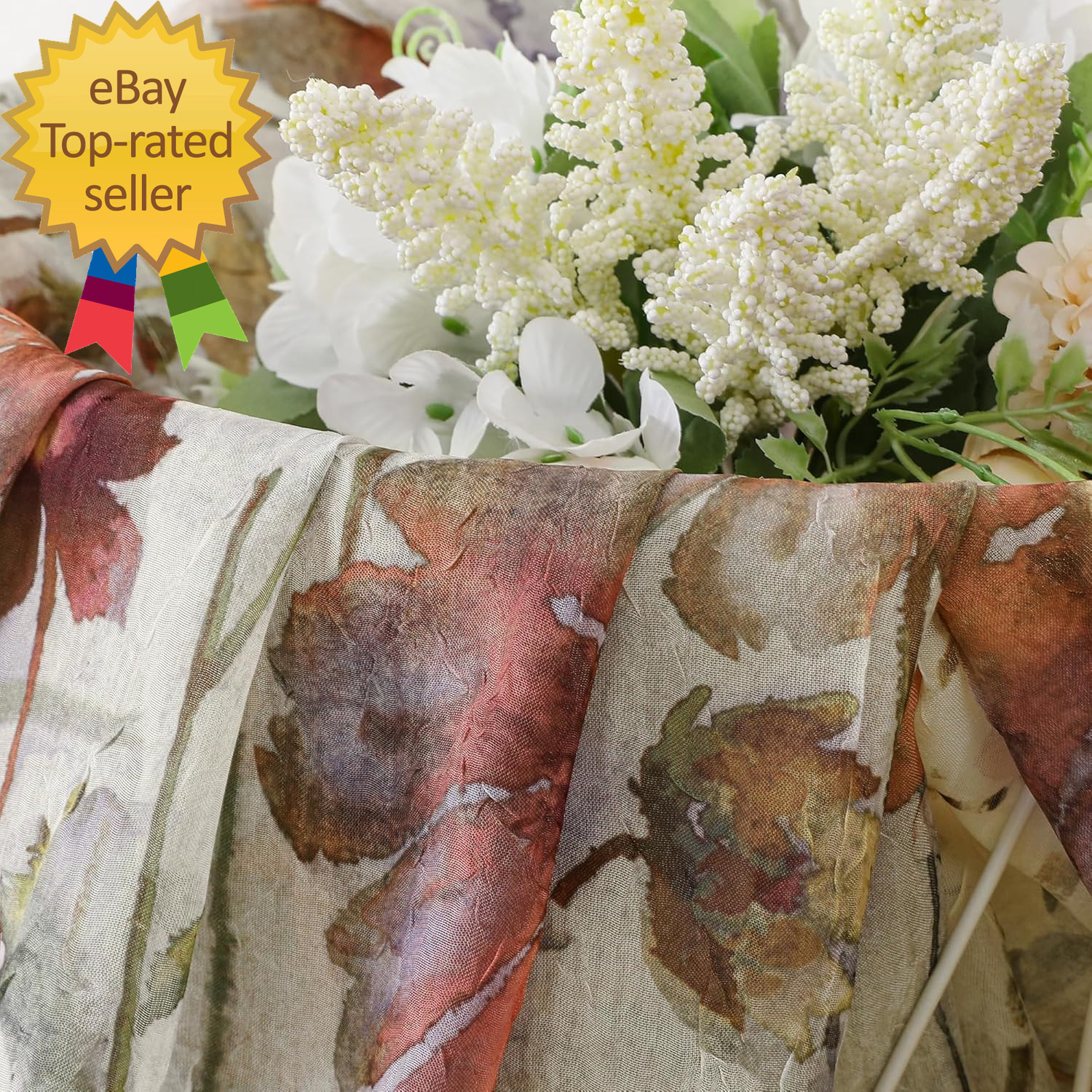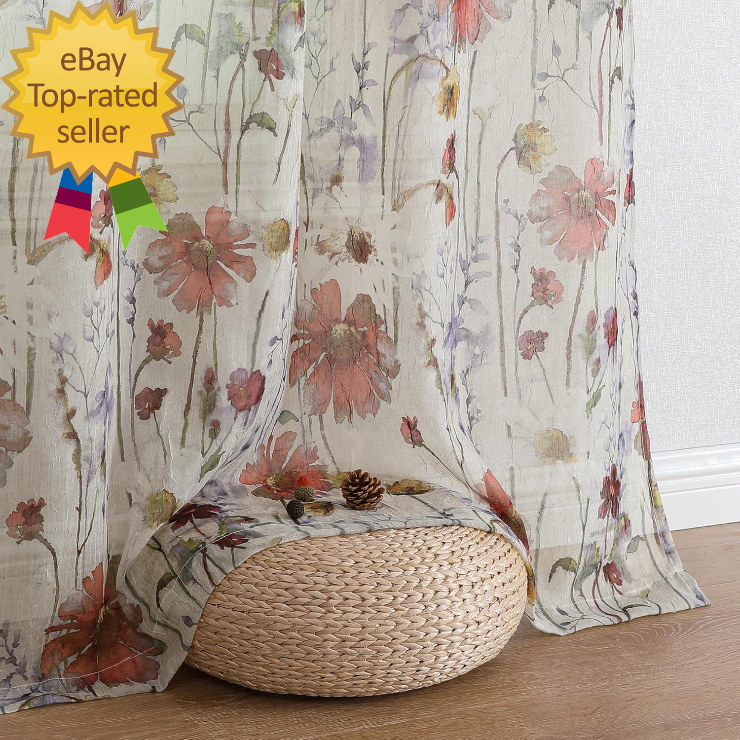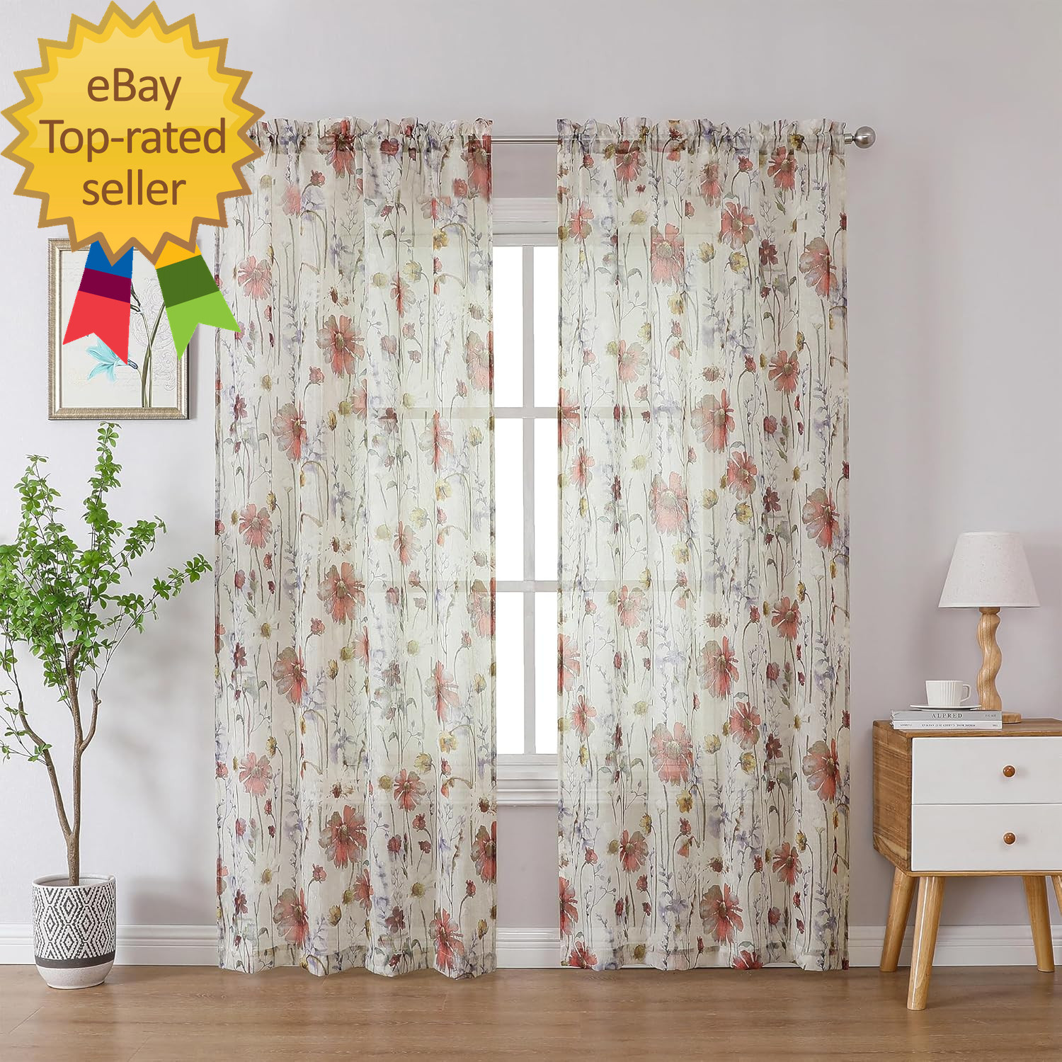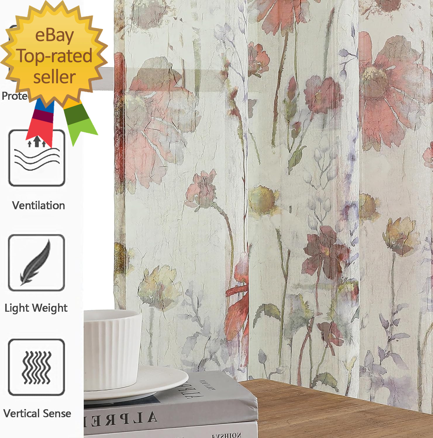 Crushed Semi Sheer Curtains 72 Inches Length 2 Panels Floral Pattern Design Rod