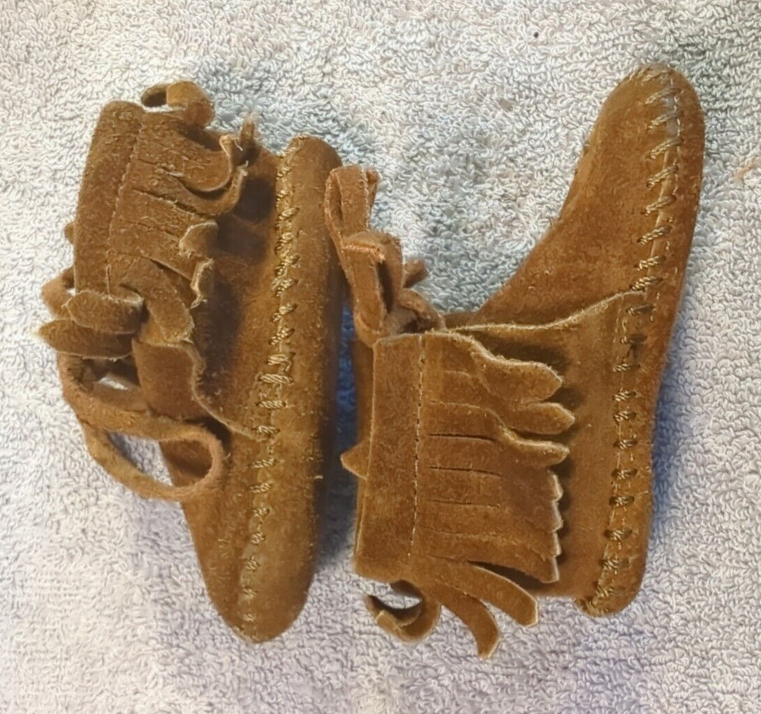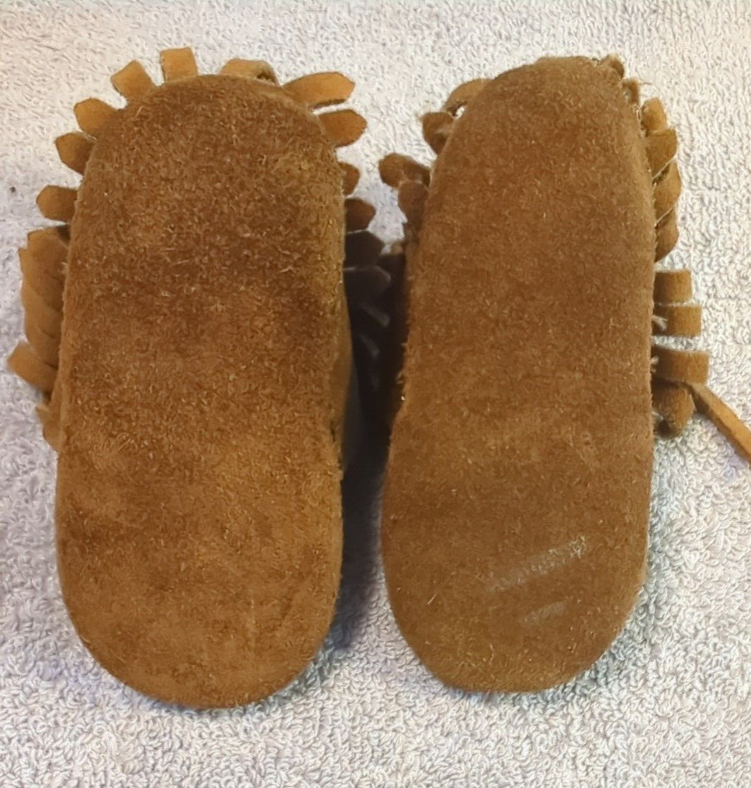 Minnetonka Lace Up Brown Leather Baby Moccasins Size 2 Shoes Vtg Pre-loved