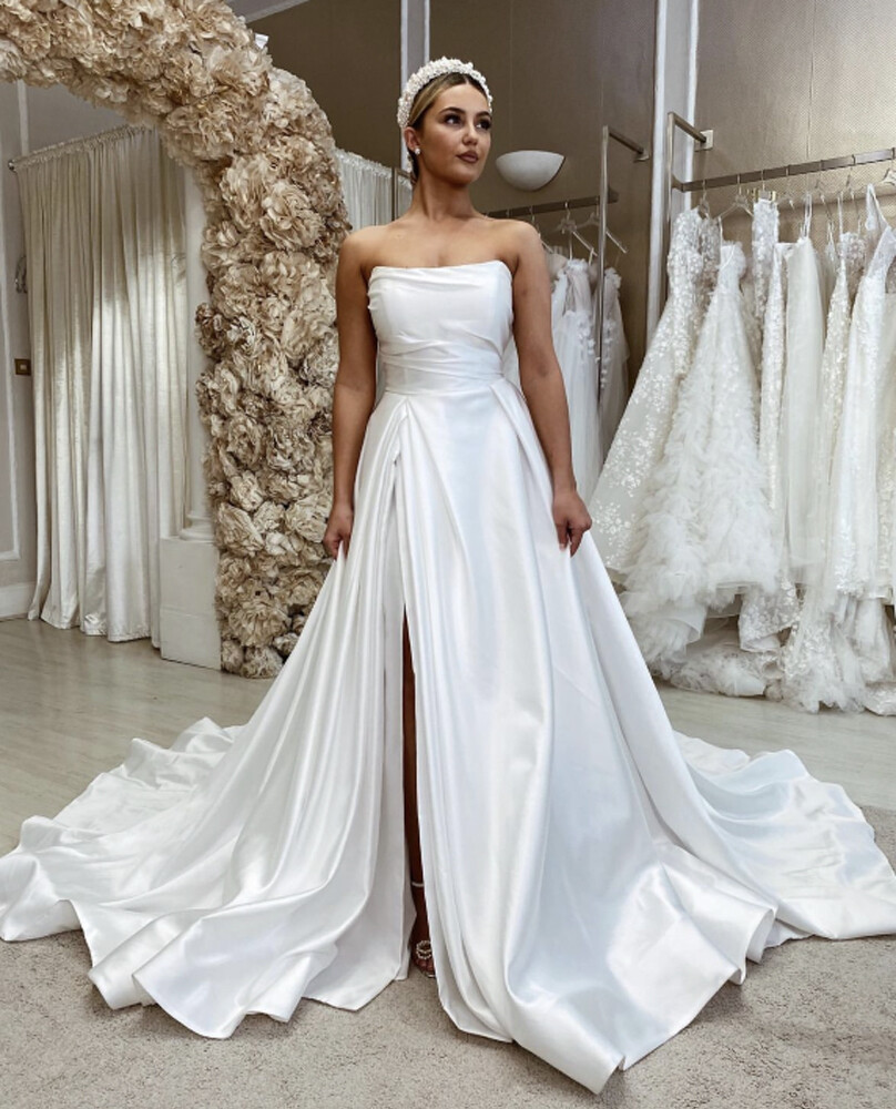 как выглядит Vintage Satin Wedding Dresses Off Shoulder High Side Slit A-line Bridal Gowns фото