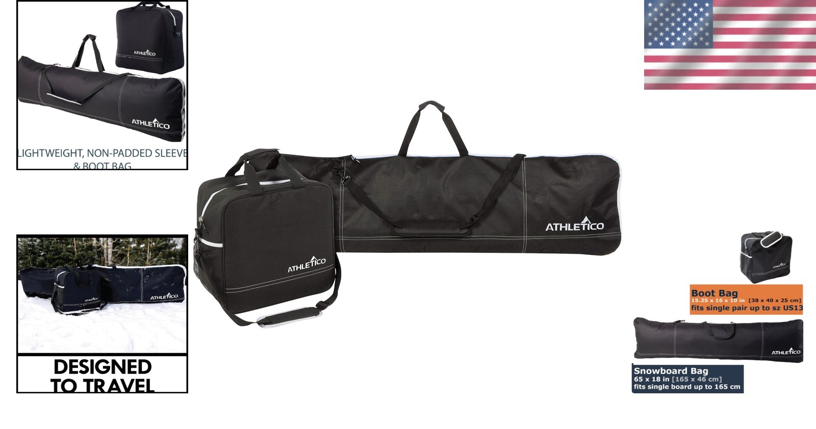 Versatile Snowboarding Gear Transport Bag Set - Black Snowboard Boot Holders