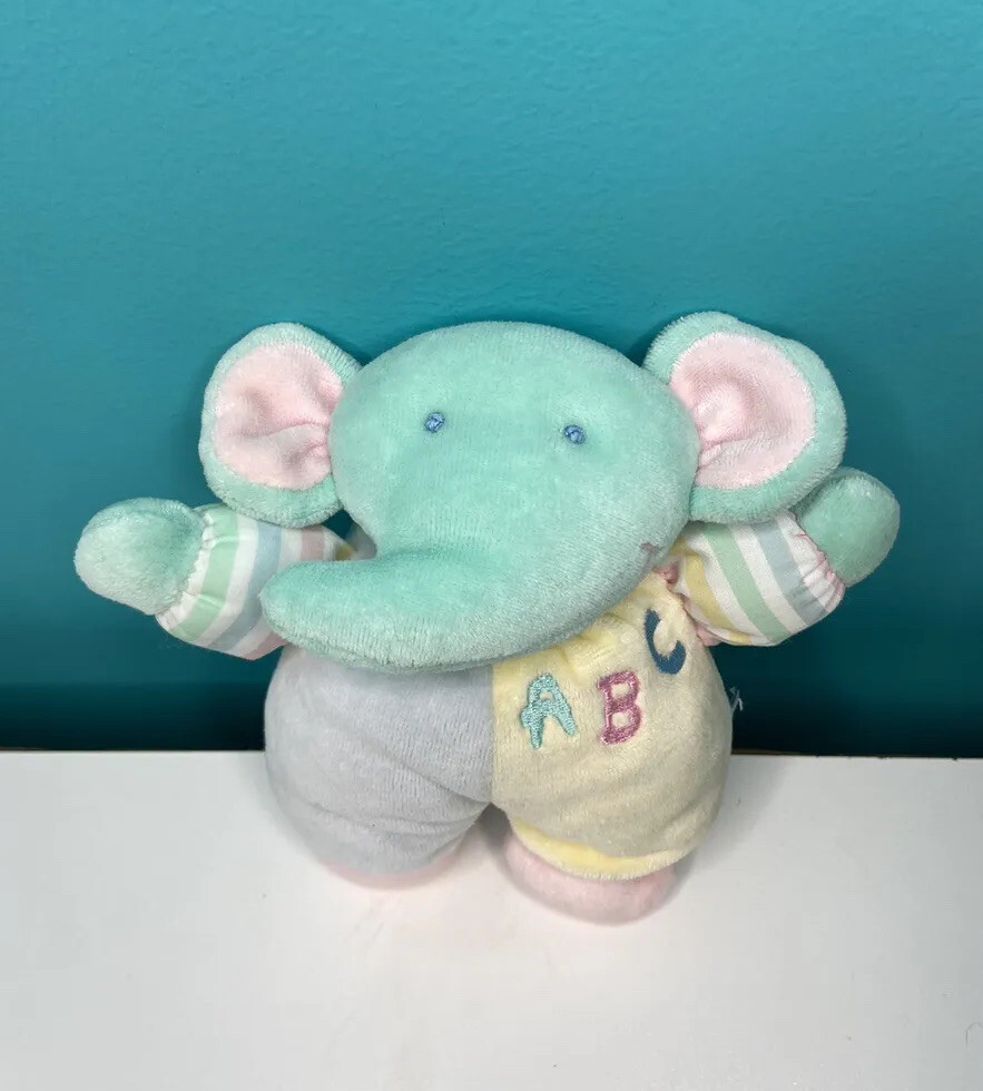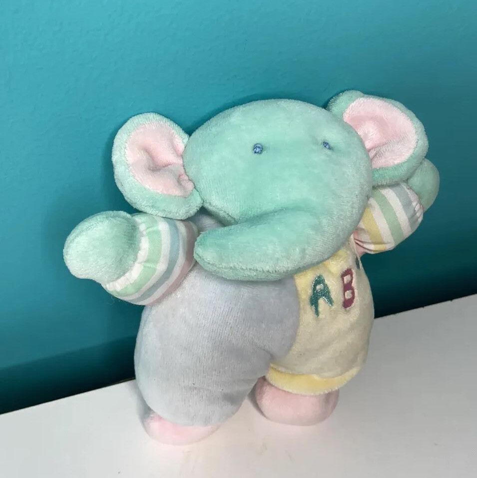 как выглядит Eden Elephant ABC Plush Lovey Pastel Colors Rattle Toy 7 Vintage Stuffed Animal фото