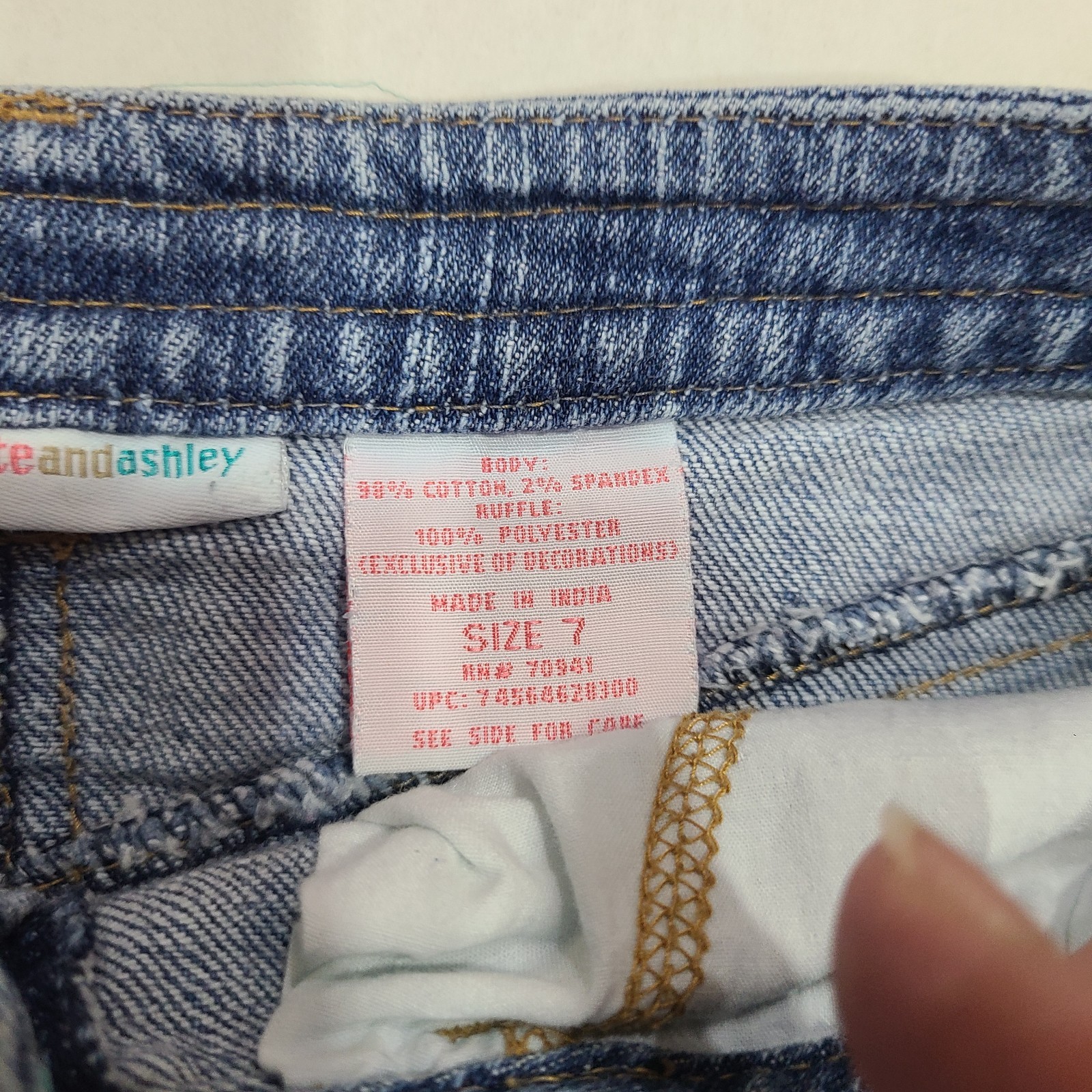 как выглядит Y2k Mary Kate And Ashley Denim Skirt Girls 7 Aqua Ruffled Hem Studs Embellished фото