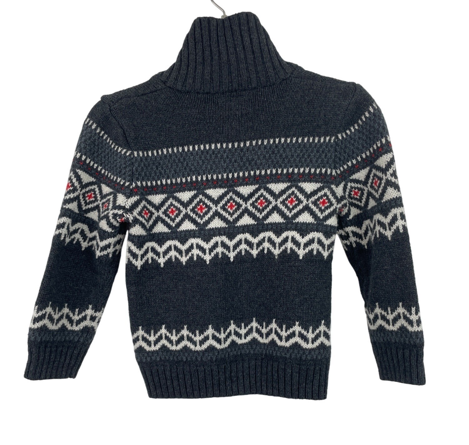 OshKosh B'Gosh Fair Isle Wool Blend Sweater Boys 4T Gray Red White Shawl Collar