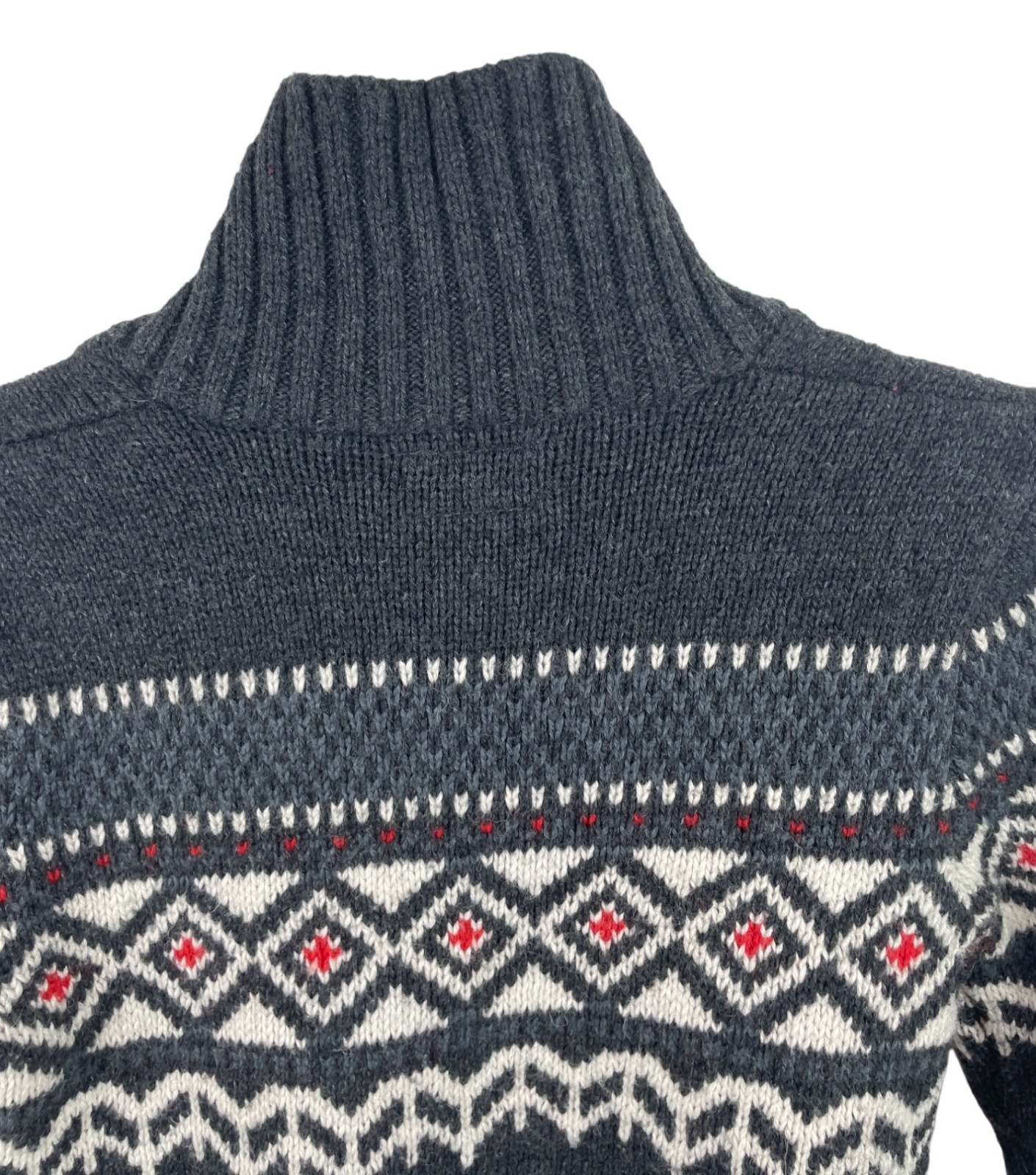 как выглядит OshKosh BGosh Fair Isle Wool Blend Sweater Boys 4T Gray Red White Shawl Collar фото