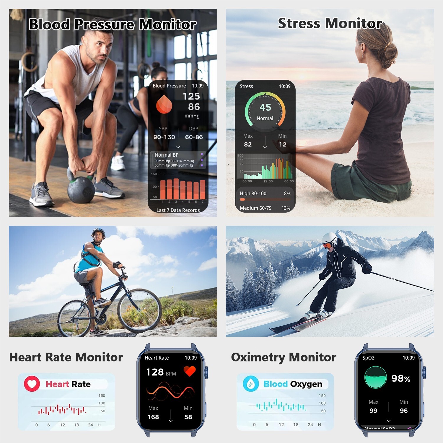 Smart Watch Heart Rate Blood Pressure Fitness Tracker for Men Women Android IOS
