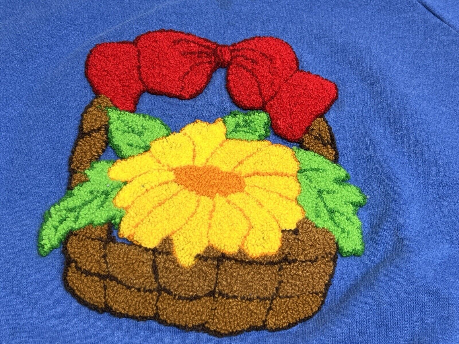 Vintage Grandma Sweatshirt Embroidered Rug Stitch Floral Cottagecore Size XL USA