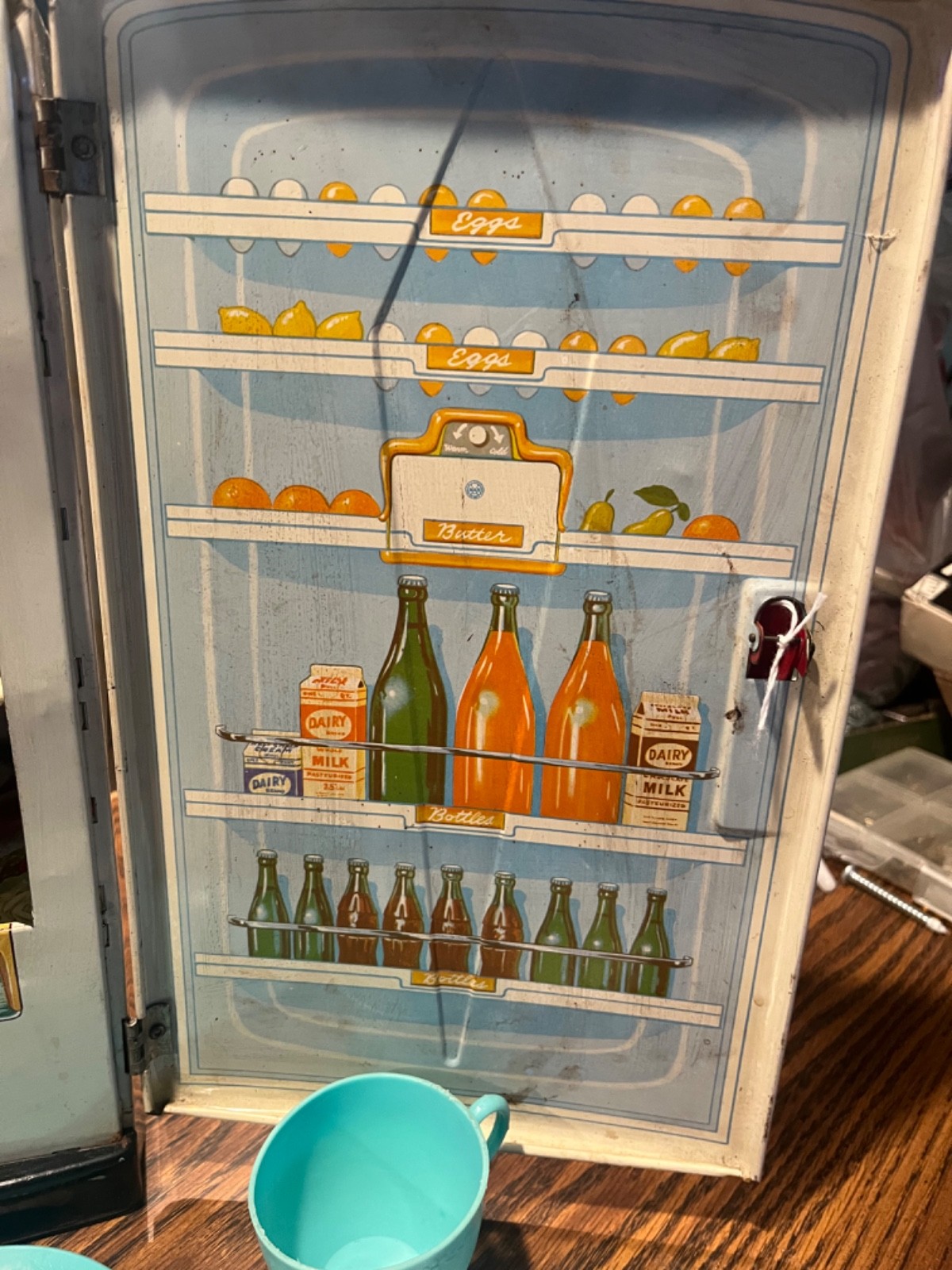 как выглядит Vintage 1950s Toy Fridge Refrigerator фото